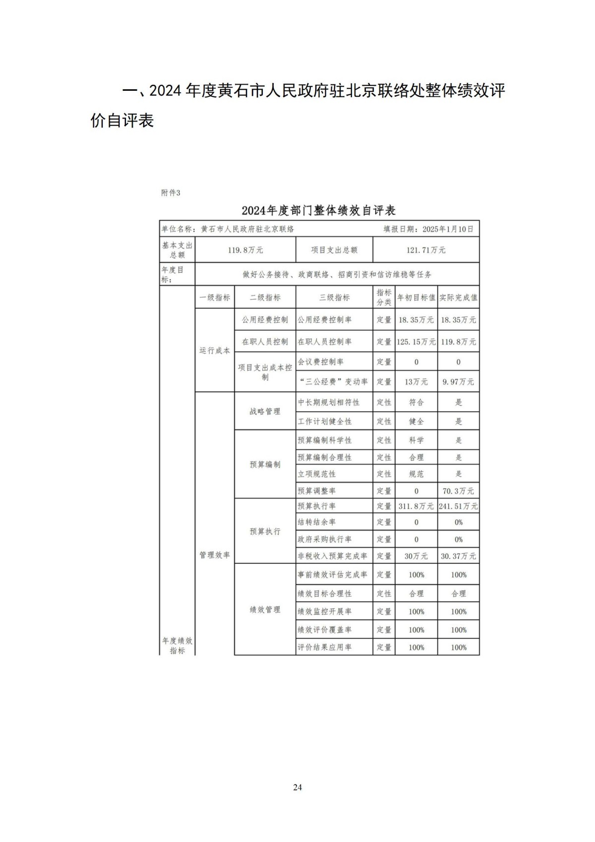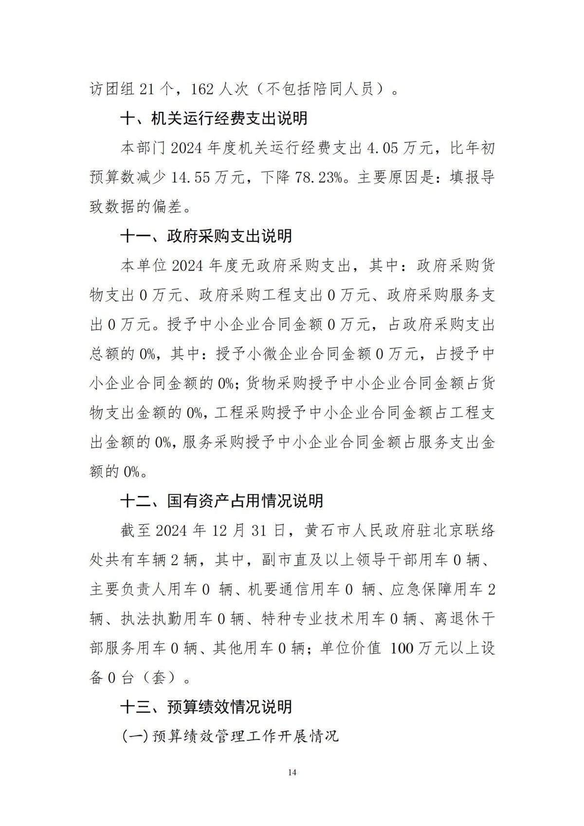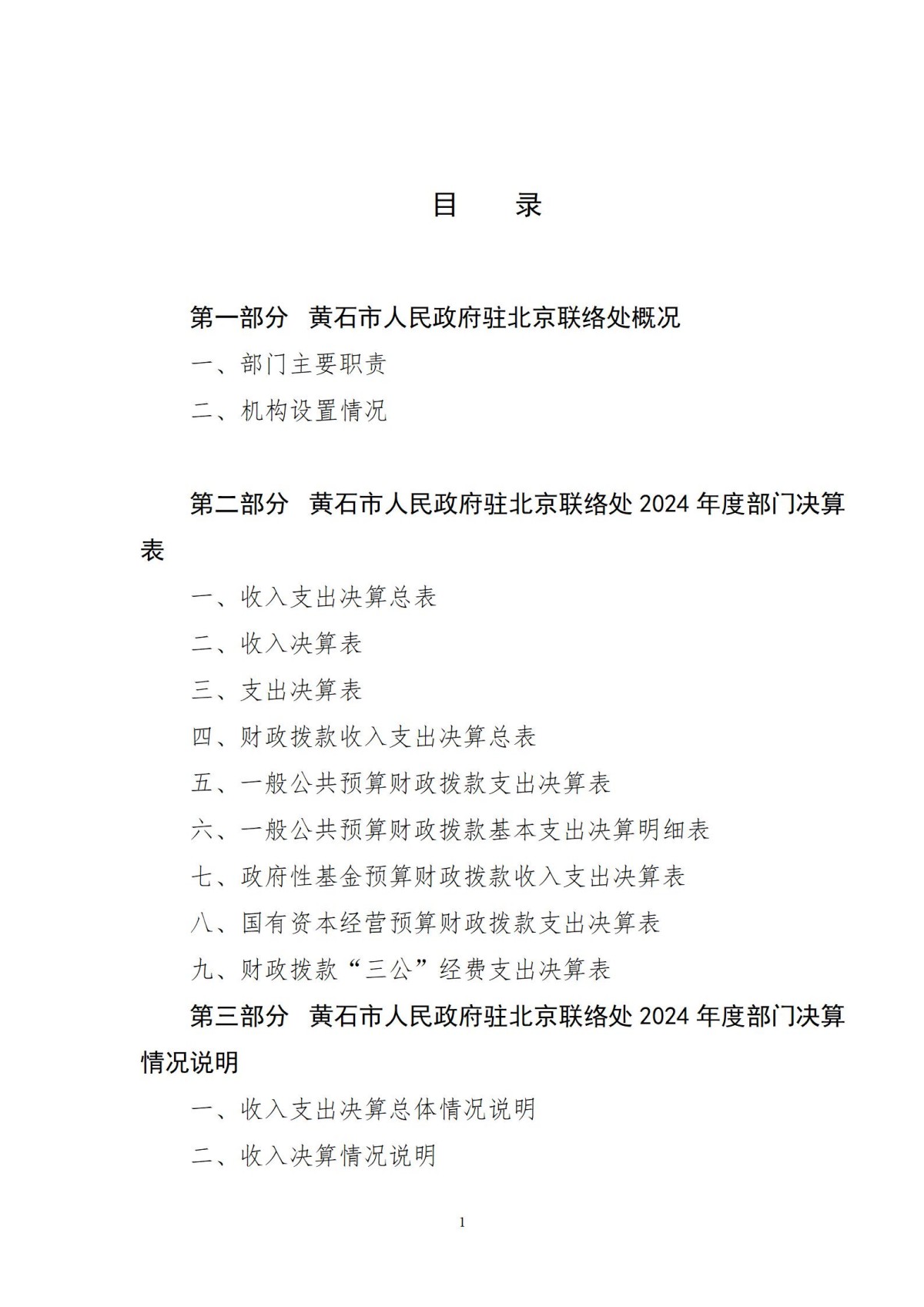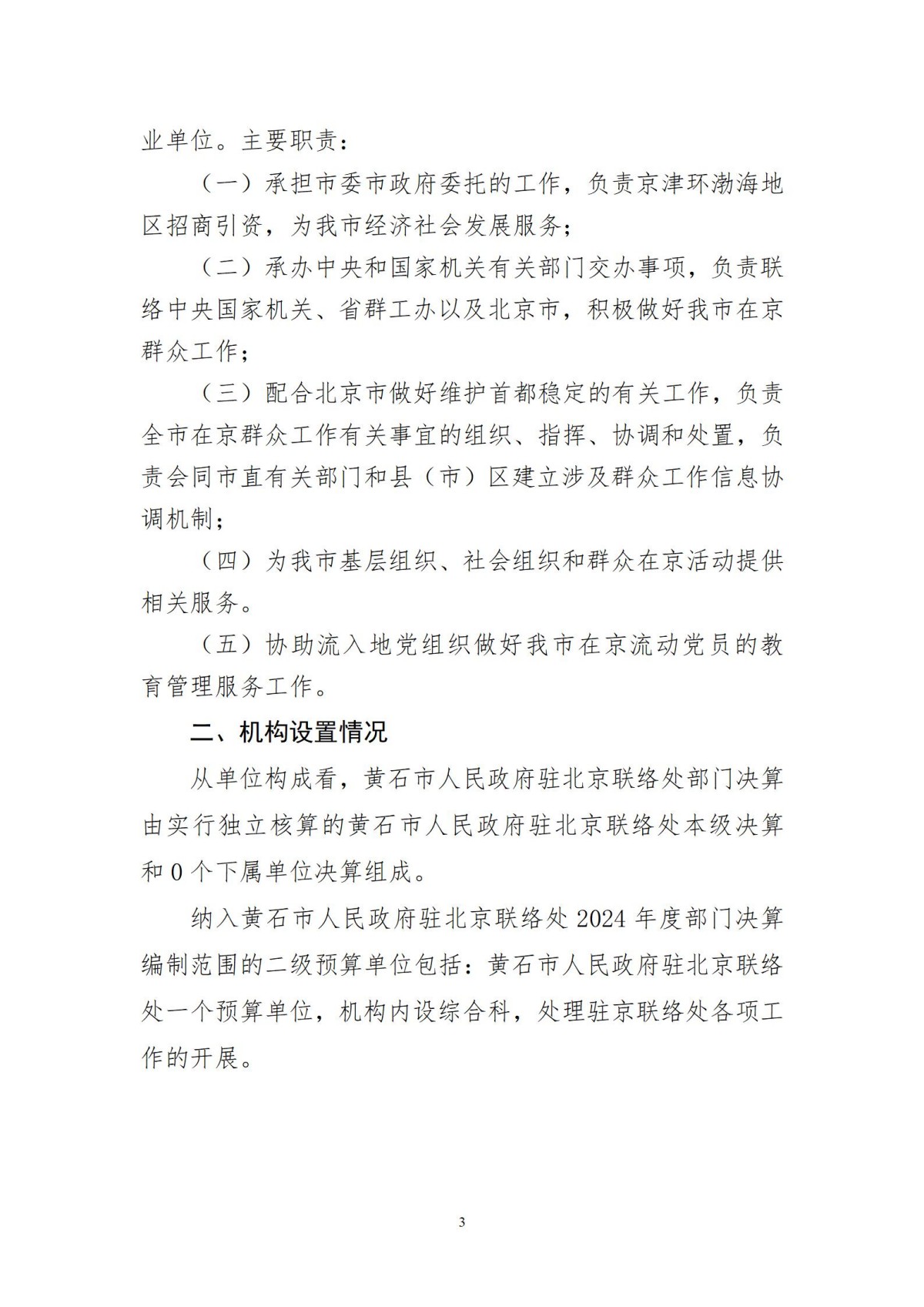黄石市人民政府驻北京联络处2024年度部门决算