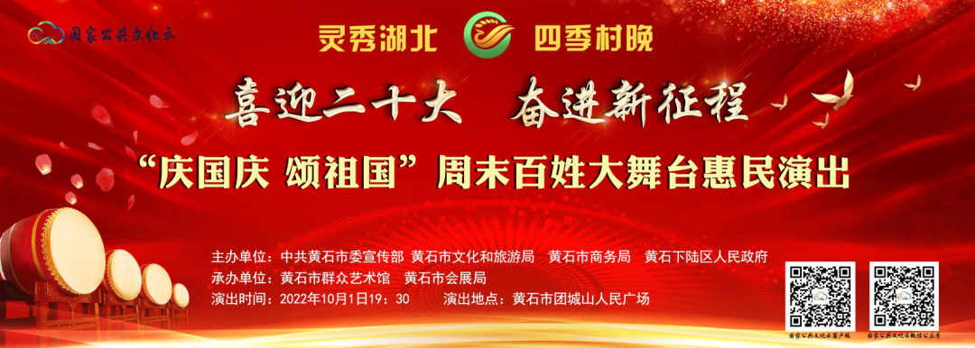 【演出预告】 灵秀湖北 四季村晚“庆国庆 颂祖国”周末百姓大舞台惠民演出