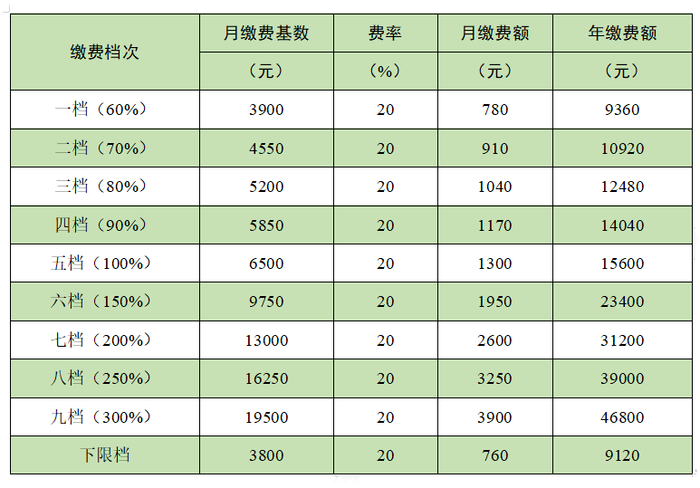 我市灵活就业人员2023社保年度(2023年7月1日——2024年6月30日)基本养老保险费档次如下: