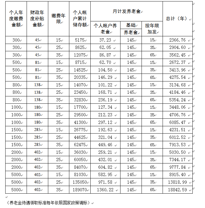 城乡居民养老保险待遇领取概算表