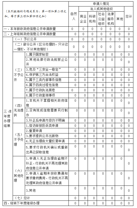 三、收到和处理政府信息公开申请情况