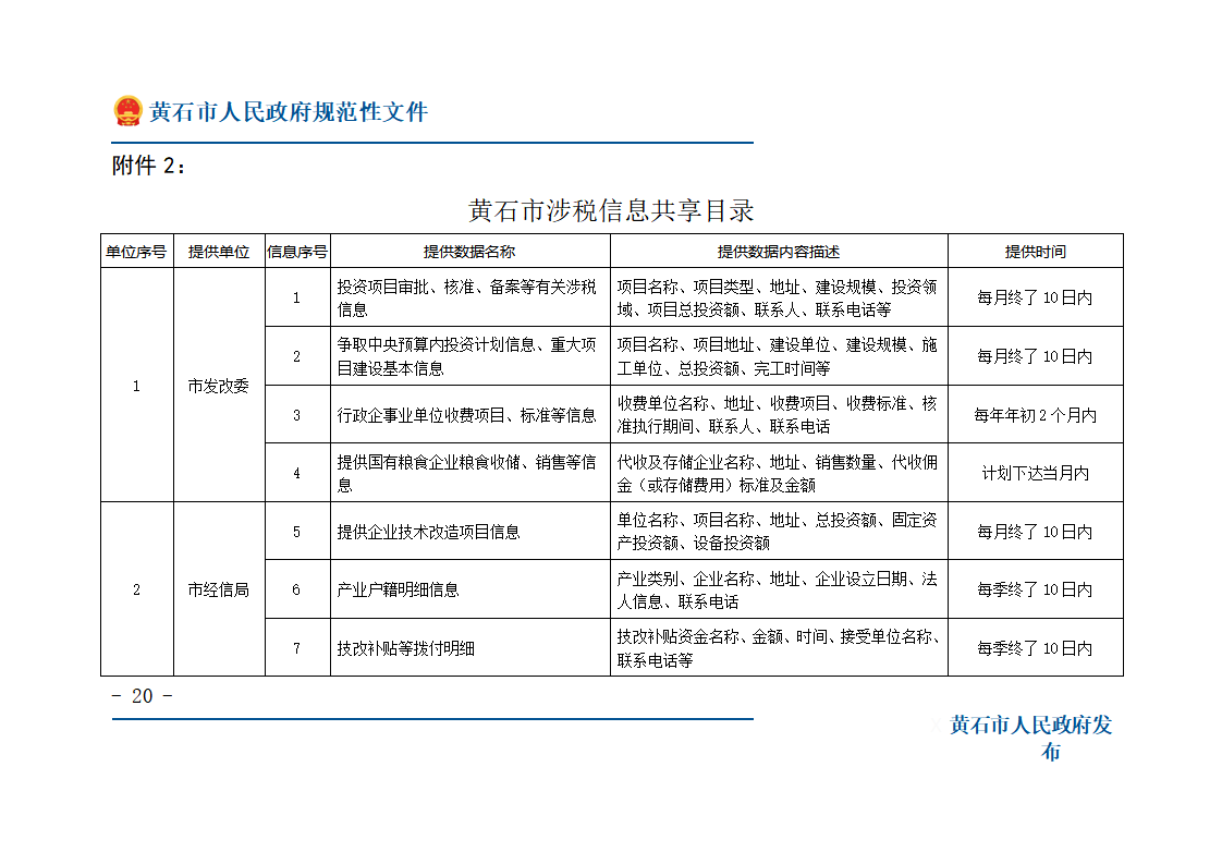 2.黄石市涉税信息共享目录