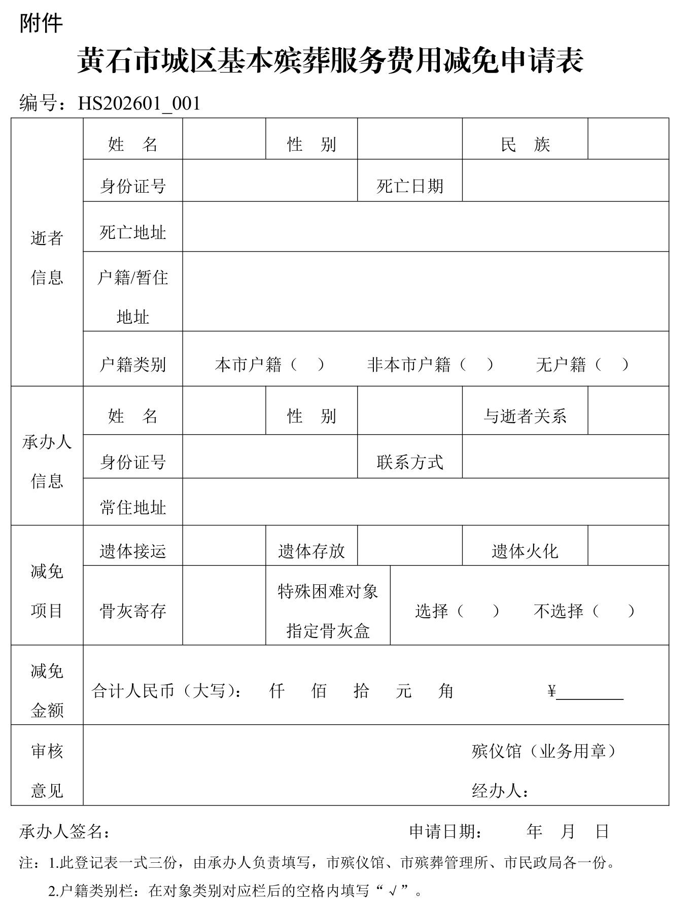 附件:黄石市城区基本殡葬服务费用减免申请表