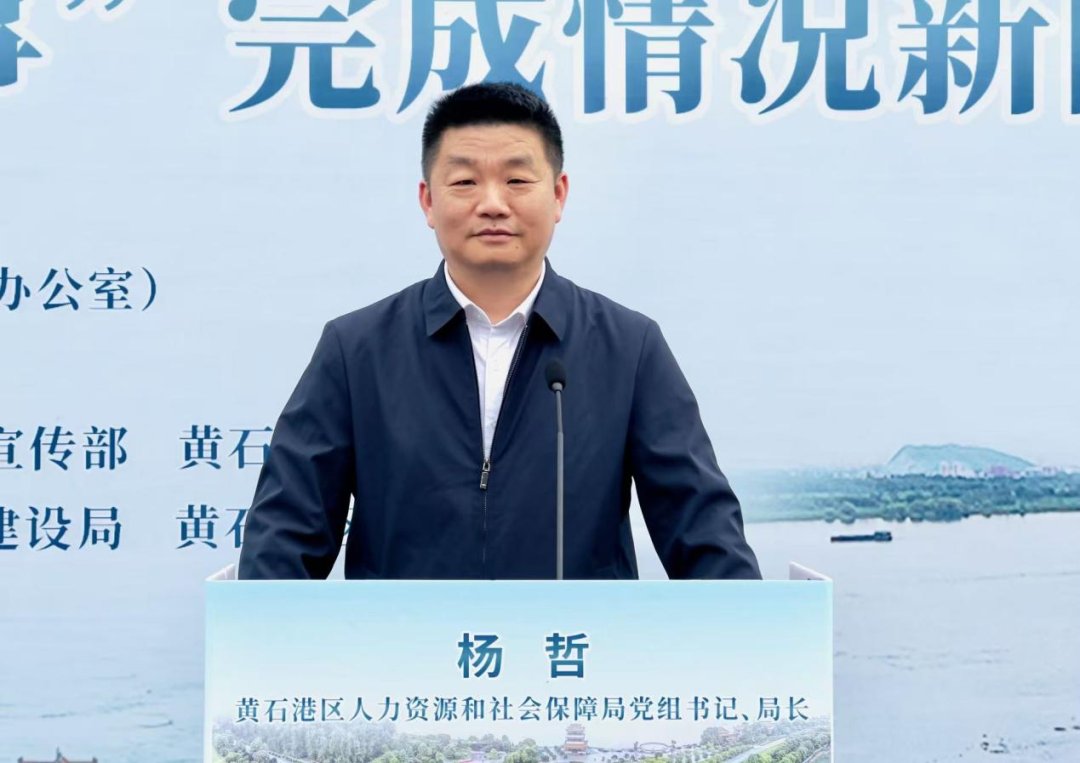 发布会上,区人民政府党组成员、副区长周邦松介绍黄石港区2025年“十件民生实事”完成情况。