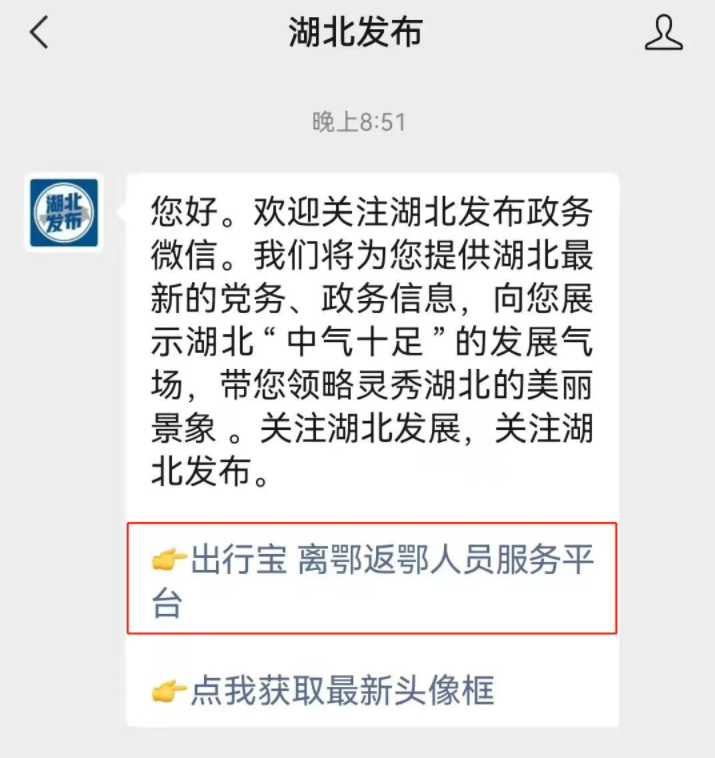 关注湖北发布,点击链接“出行宝离鄂返鄂人员服务平台”