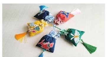 阳新布贴“香佩系列”颜色鲜艳、设计精美、制作精巧。胡芳介绍,“香佩系列”将传统技艺与现代元素相结合,设计取材于传统布贴纹样,沿用阳新布贴的传统技艺,绕边缝饰、撒花。这是参加2021年湖北省非遗文创设计比赛时创作的文创产品,在当时的比赛中荣获“优秀奖”。