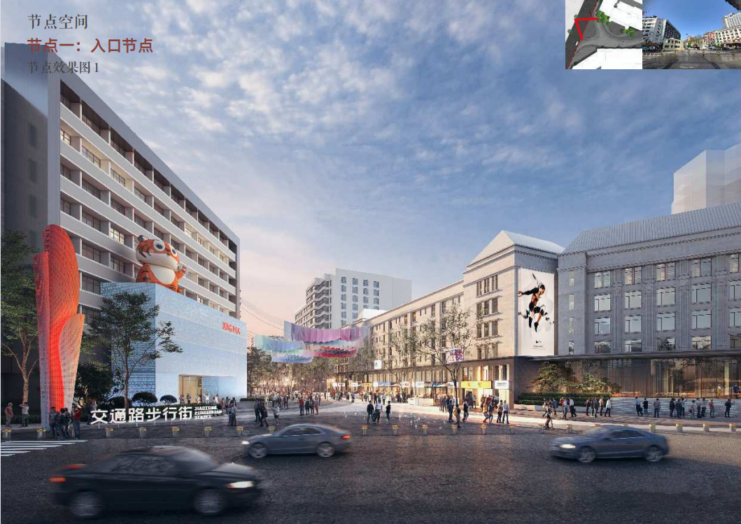 据介绍,交通路步行街的改造以现代简约为主体风格,以城市记忆点为文化线索,串联街区整体风格印象。使人漫步在步行街时,既有对城市历史的怀念,更有对城市未来的展望。