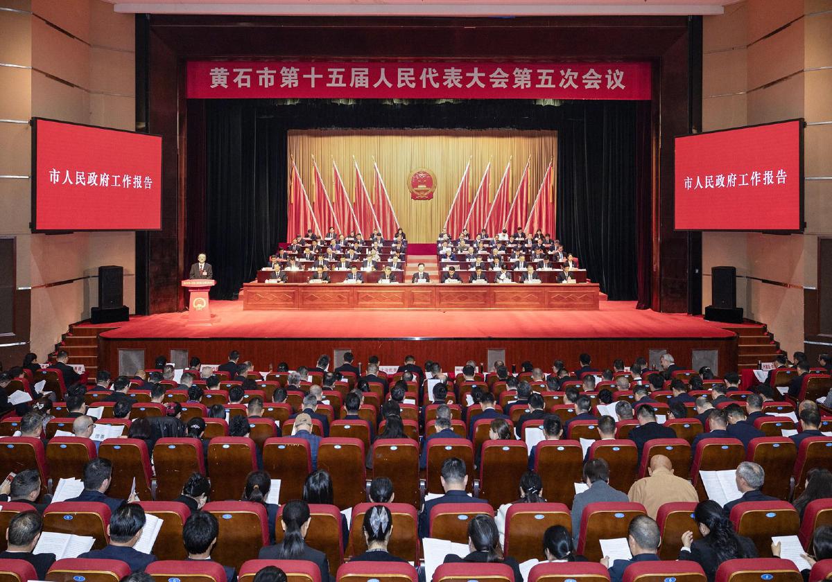 15日,黄石市第十五届人民代表大会第五次会议在磁湖剧院开幕。 黄石融媒记者 周巍 摄