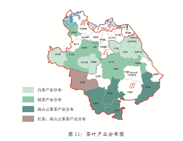 到2020年发展茶叶种植面积达到20万亩,主要以白茶、绿茶、高山云雾茶为主,辐射带动贫困人口10000人。白茶重点发展韦源口镇、金海开发区、黄颡口镇、太子镇、大王镇、殷祖镇、金牛镇、刘仁八镇;绿茶重点发展白沙镇、浮屠镇、陶港镇、保安镇、陈贵镇、灵乡镇、金湖街办;高山云雾茶重点发展龙港镇、洋港镇、王英镇、排市镇、枫林镇;红茶重点发展王英镇。产业分布如图11所示。