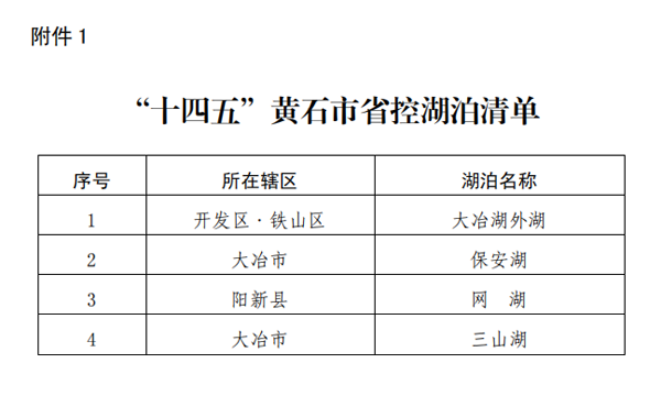 1.“十四五”黄石市省控湖泊清单