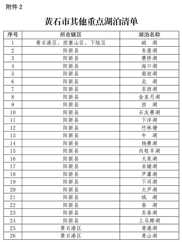 2.黄石市其他重点湖泊清单