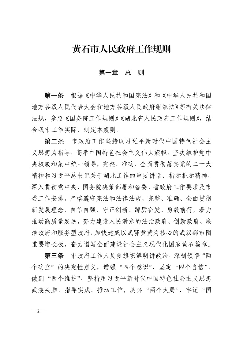 《黄石市人民政府工作规则》已经2023年5月15日召开的市政府第40次常务会议审议通过,现予印发。
