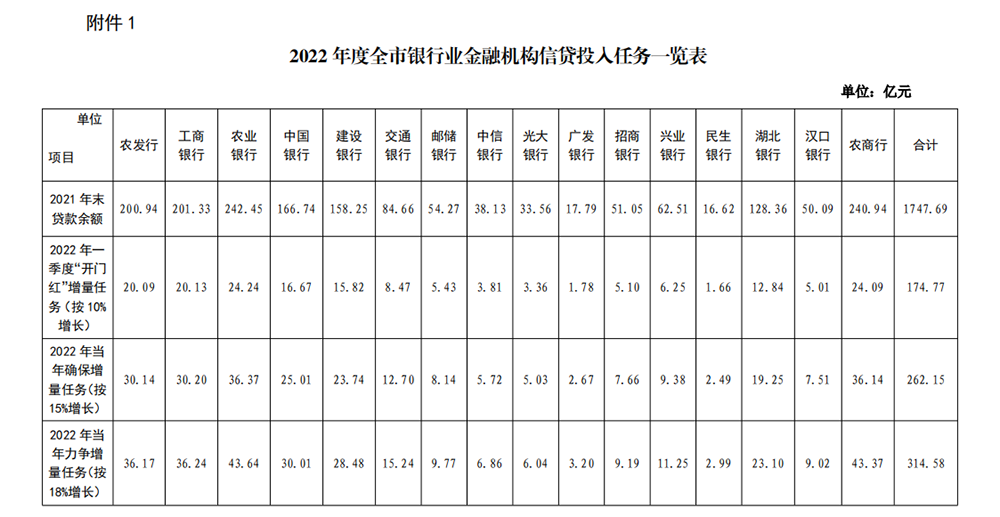 1.2022年度全市银行业金融机构信贷投入任务一览表
