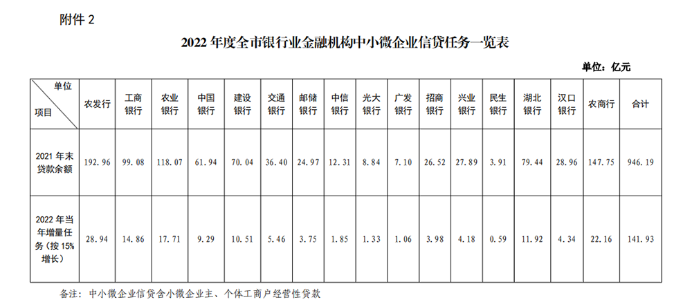 2.2022年度全市银行业金融机构中小微企业信贷任务一览表