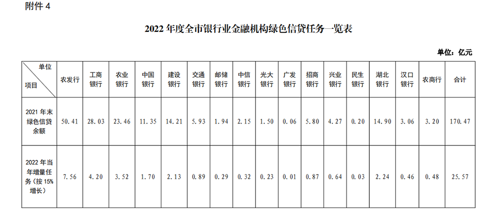 4.2022年度全市银行业金融机构绿色信贷任务一览表