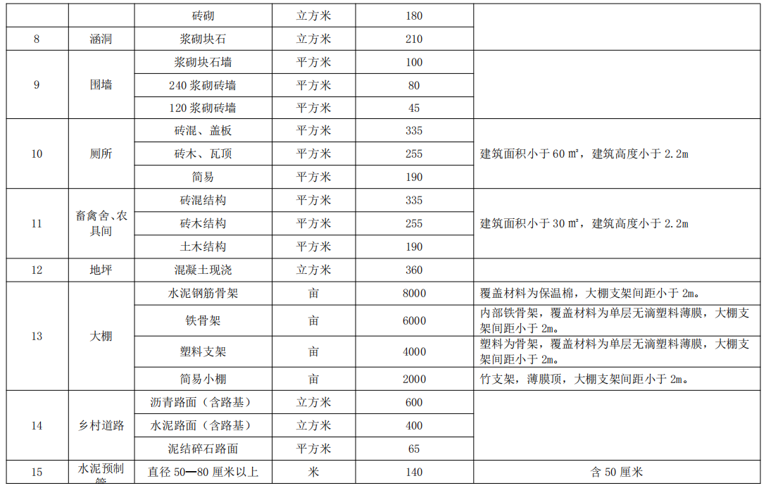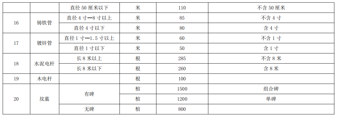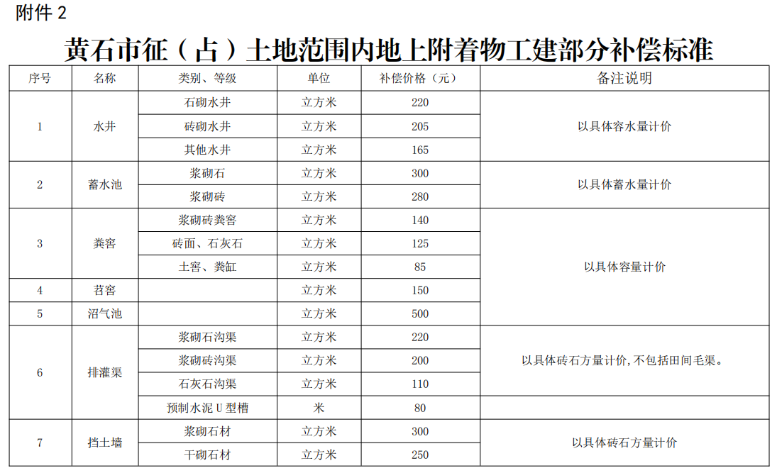 黄石市征(占)土地范围内地上附着物工建部分补偿标准