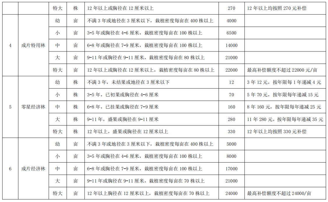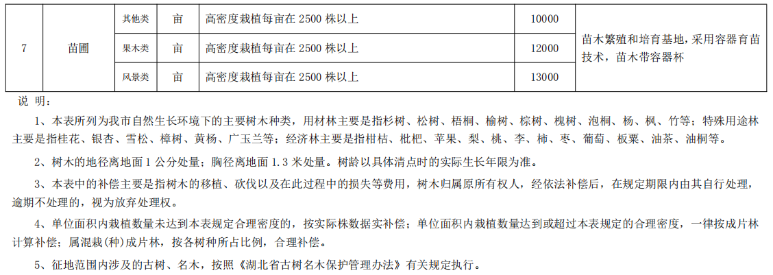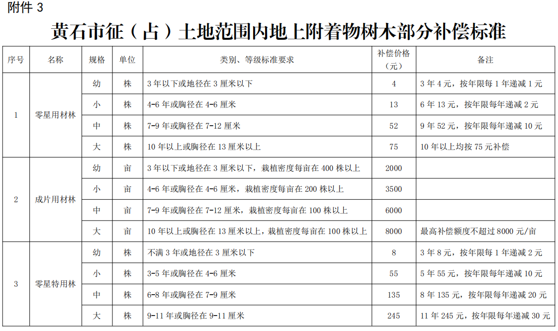 黄石市征(占)土地范围内地上附着物树木部分补偿标准