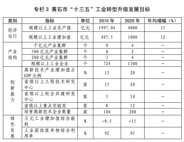 黄石市工业转型和升级“十三五”规划(2016-2020年)
