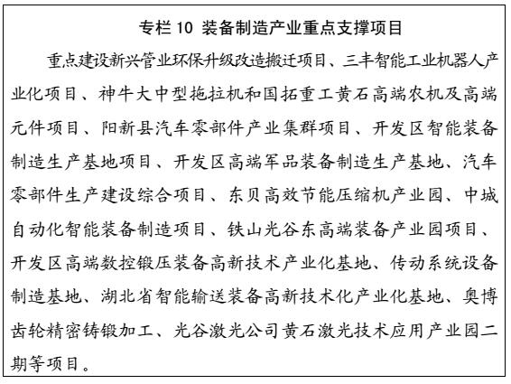 3、黄石新港(物流)工业园:重点发展新材料、装备制造、食品精深加工等产业,打造临港产业基地。