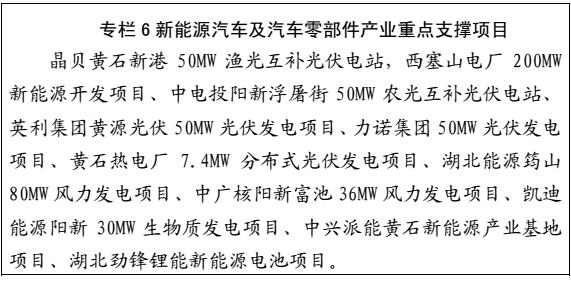 ——新能源开发利用。依托晶贝新能源、西塞山电厂,有序开发大型地面光伏电站,鼓励支持在城市建筑、工业企业建筑屋顶开发利用分布式光伏发电,大力推进农村地区光伏精准扶贫项目。积极支持湖北能源集团、中广核风电推广先进、高效、大功率的风能发电。支持生物质能资源,垃圾发电、地热开发利用等新能源项目建设。
