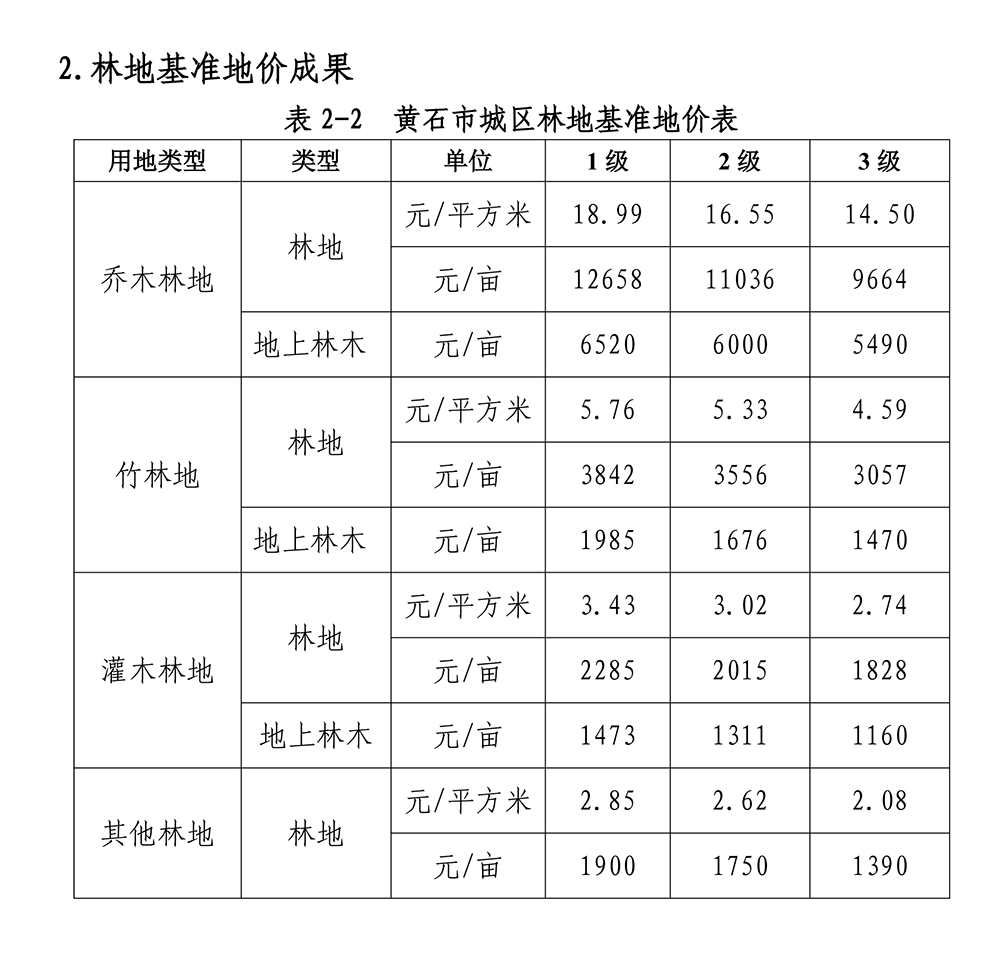 2.2023年黄石市城区林地定级与基准地价成果