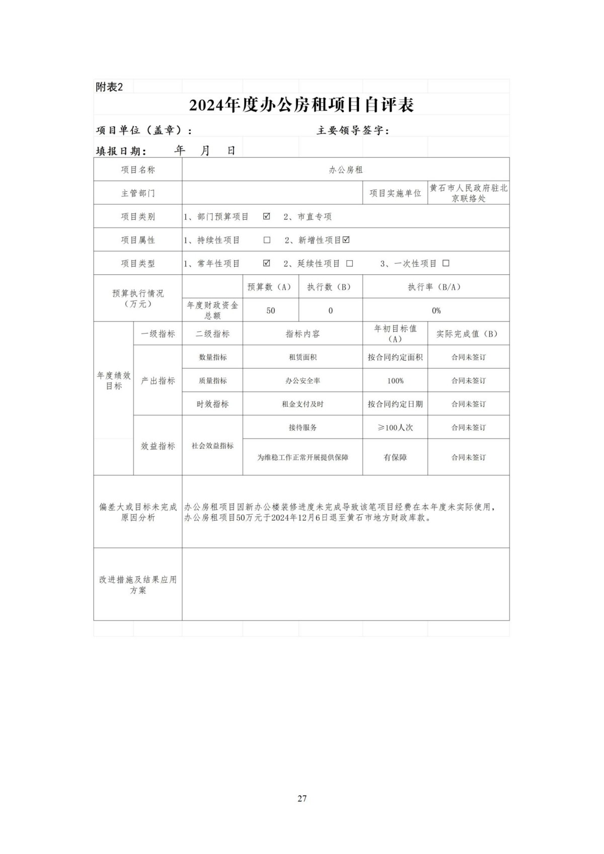 黄石市人民政府驻北京联络处2024年度部门决算