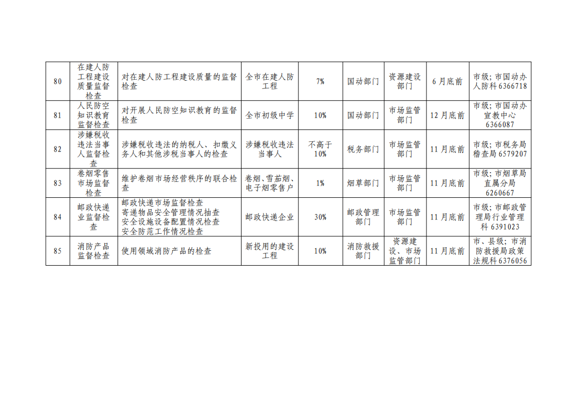 各县(市、区)市场监管局要严格对照部门联合抽查事项清单,紧密结合本地产业发展特点、监管工作实际和群众关心关注的民生热点,坚持问题导向、目标导向、结果导向相统一,统筹制定本辖区部门联合双随机抽查年度计划,计划制定完成后报市市场监管局和同级司法行政部门备案。要加强区域内、系统内双随机抽查工作的统筹协调,进一步整合本部门内部各类抽查检查计划,积极推进多级联动、“综合查一次”等监管模式创新,切实减少涉企监督检查频次,着力降低企业迎检成本和负担,持续优化本地营商环境,激发经营主体发展活力。