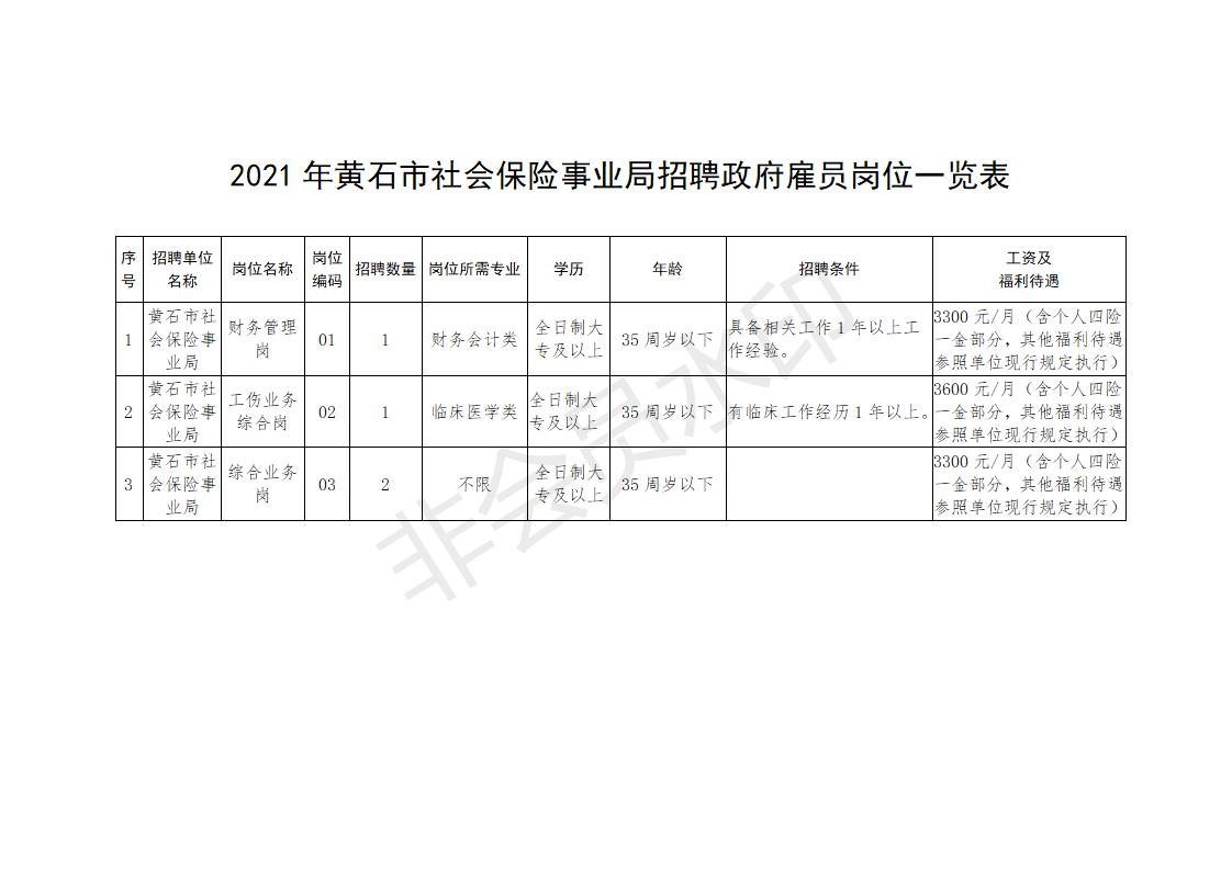 2021年黄石市社会保险事业局招聘政府雇员公告