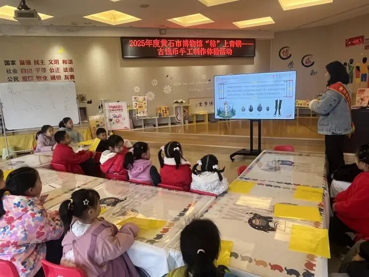从夏晚期的贝币到秦汉的方孔圆钱,明清的银元宝钞、民国的券钞大洋,再到新中国人民币的出现。钱币不仅见证了时代的变革与发展,也是传统文化中不可或缺的一部分。3月8日上午,黄石市博物馆博学堂开展以“‘粘’上青铜——古钱币手工制作体验”为主题的社教活动,30余名学生及家长参加其中,感受古代钱币的历史魅力。