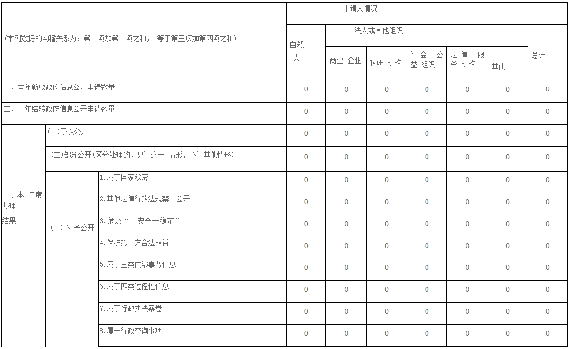 2024年,我局能够按要求对申请公开和不予公开的政务信息进行受理,全年未出现不答复、不备案问题。按规定完善了接待场所,并且按要求进行日常维护。2024年,我局收到0件信息公开申请。