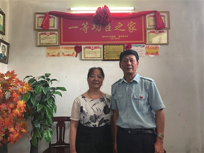 来到易柏秋家,门口的喜报横幅拉得笔直,家中“一等功之家”的牌匾擦得锃亮。