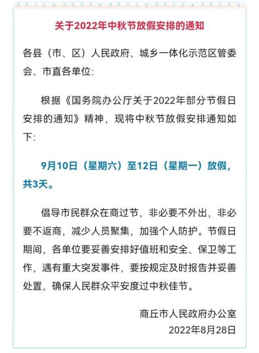 在河南商丘,商丘市政府在中秋放假通知中也提到,“倡导市民群众在商过节,非必要不外出,非必要不返商”。