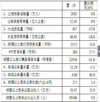 【服务业】1~7月服务业情况