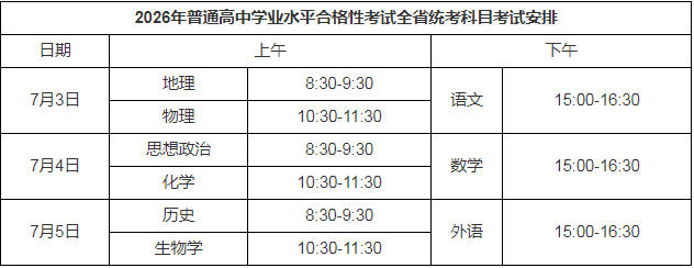 21日,记者从湖北省教育考试院获悉,2026年湖北省普通高中学业水平合格性考试全省统考科目考试3月18日起开始网上报名,考试时间定于7月3日至5日举行。