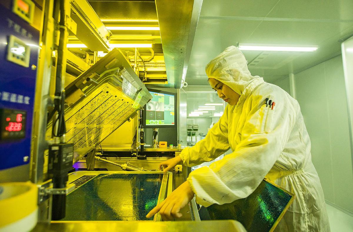 在永兴隆电子生产车间,工人聚精会神加工覆铜板。