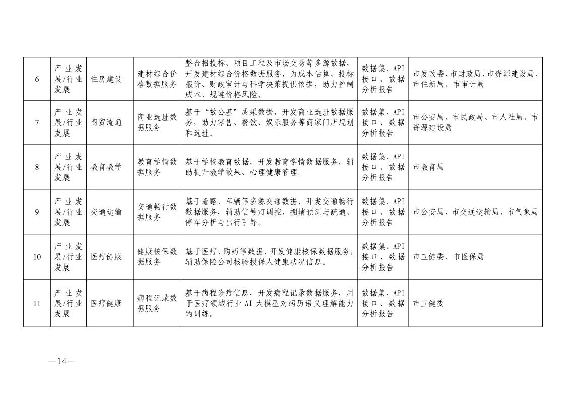 (六)打造一批授权运营典型场景。围绕全市经济社会发展需要,加强公共数据重点运营领域和典型应用场景的挖掘梳理,并对应用场景的经济价值、社会价值、商业模式以及数据需求的合理性、必要性等开展评估。优先鼓励支持在与社会民生紧密相关、行业增值潜力显著和产业战略意义重大的金融服务、住房建设、商贸流通、教育教学、文化旅游、交通运输、医疗健康、城市治理等领域重点突破,打造示范性强、显示度高、带动性广的典型应用场景。[责任单位:市数据局、市发改委、市教育局、市科技局、市经信局、市财政局、市人社局、市资源建设局、市住新局、市交通运输局、市农业农村局、市商务局、市文旅局、市卫健委、市城管委、市市场监管局、市医保局、市政务服务局、市公积金中心等有关单位、各县(市、区)人民政府、新港园区管委会]