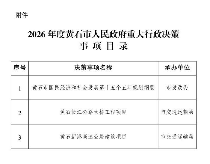附件:2026年度黄石市人民政府重大行政决策事项目录