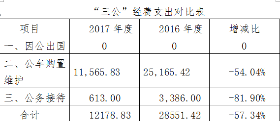 与2016年度相比,“三公”经费支出下降明显,公车维护费同比下降54.04%。本单位严格遵守中央八项规定、省市意见要求,完善相关制度建设,在降低行政成本方面成效显著。