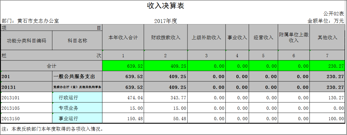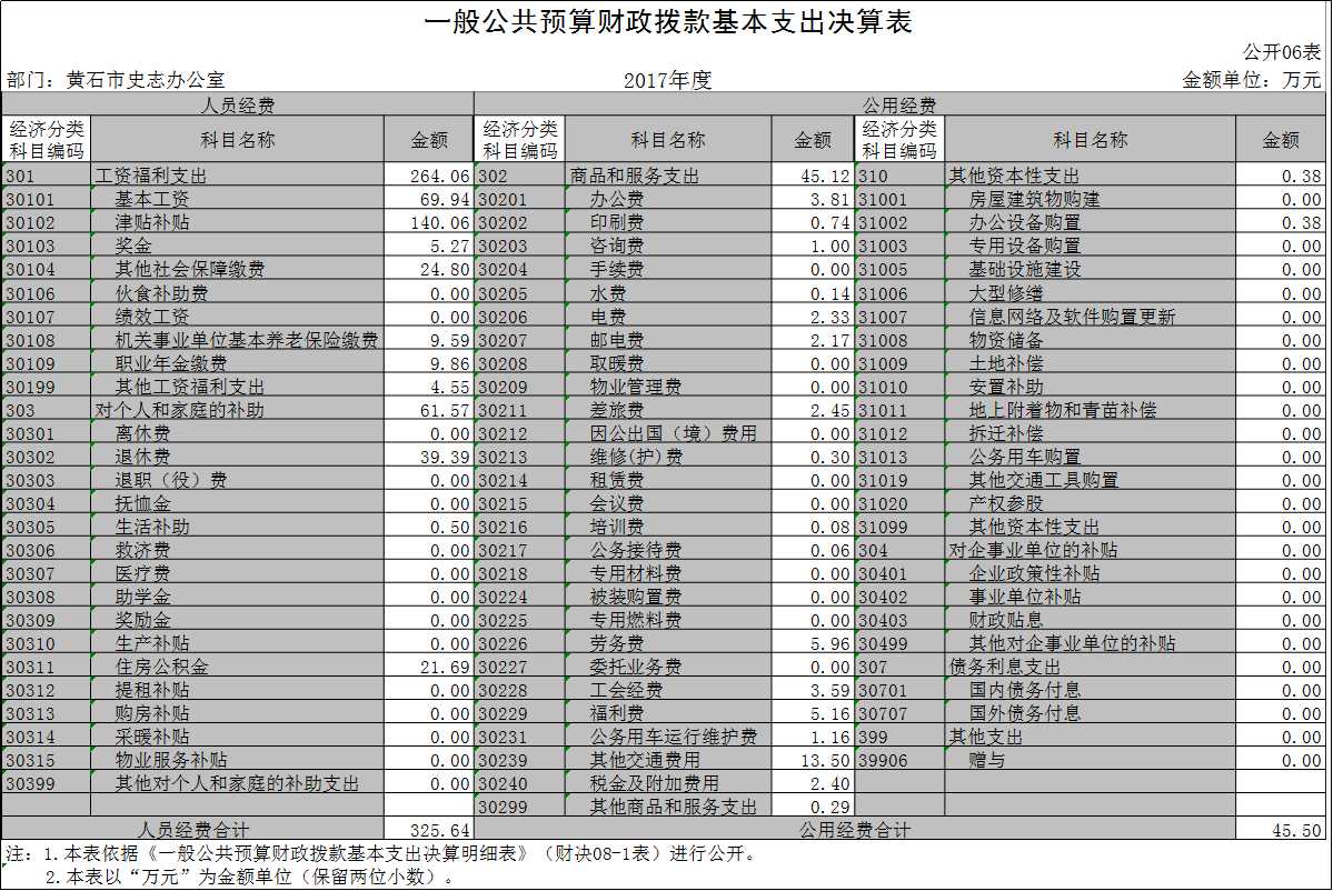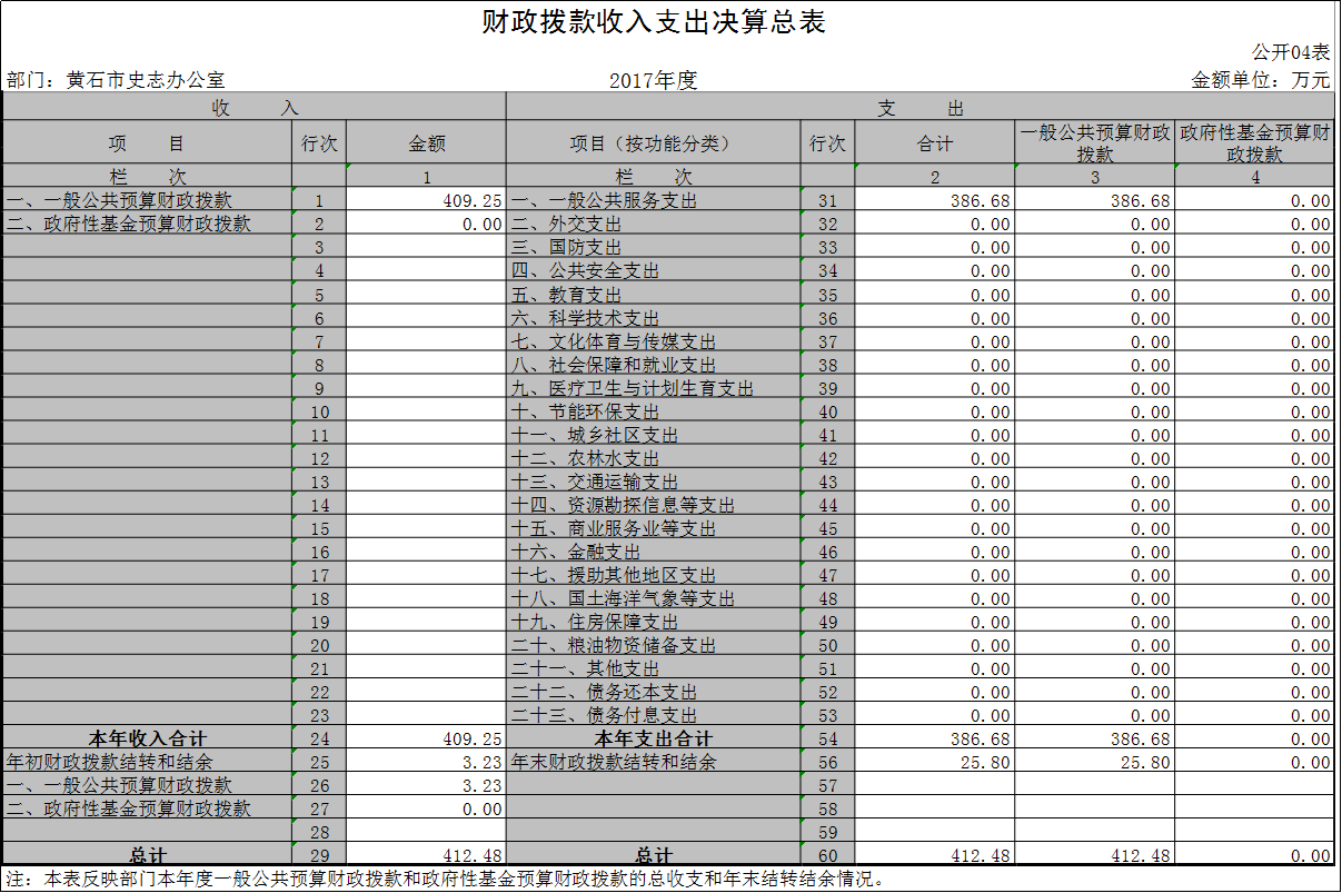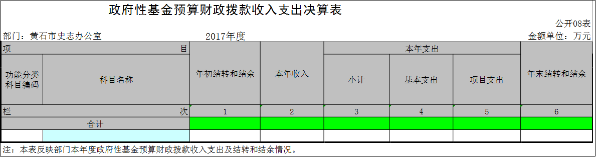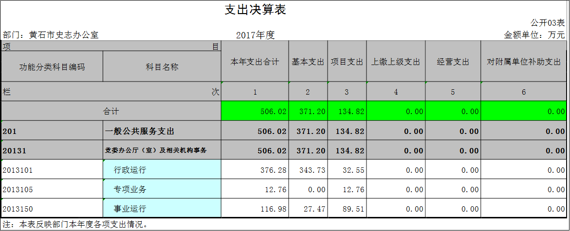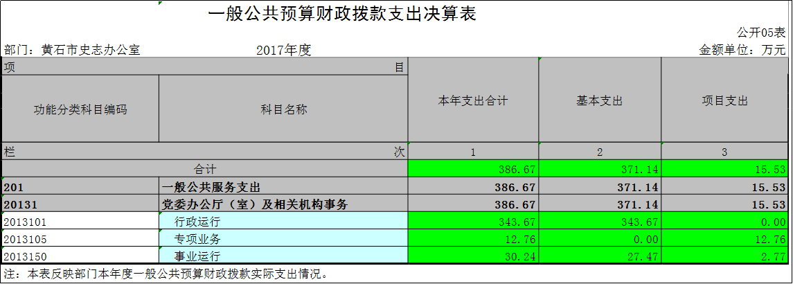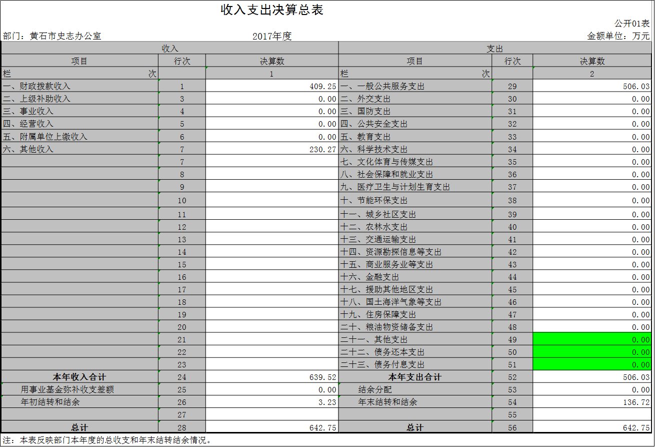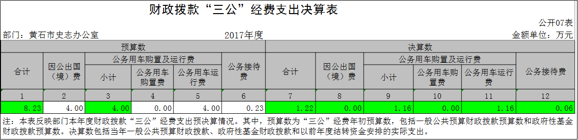 黄石市史志办公室2017年度部门决算公开表格