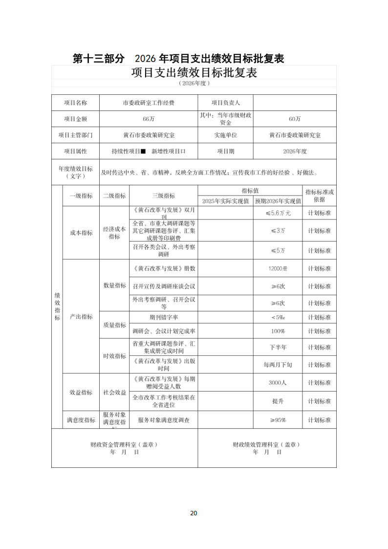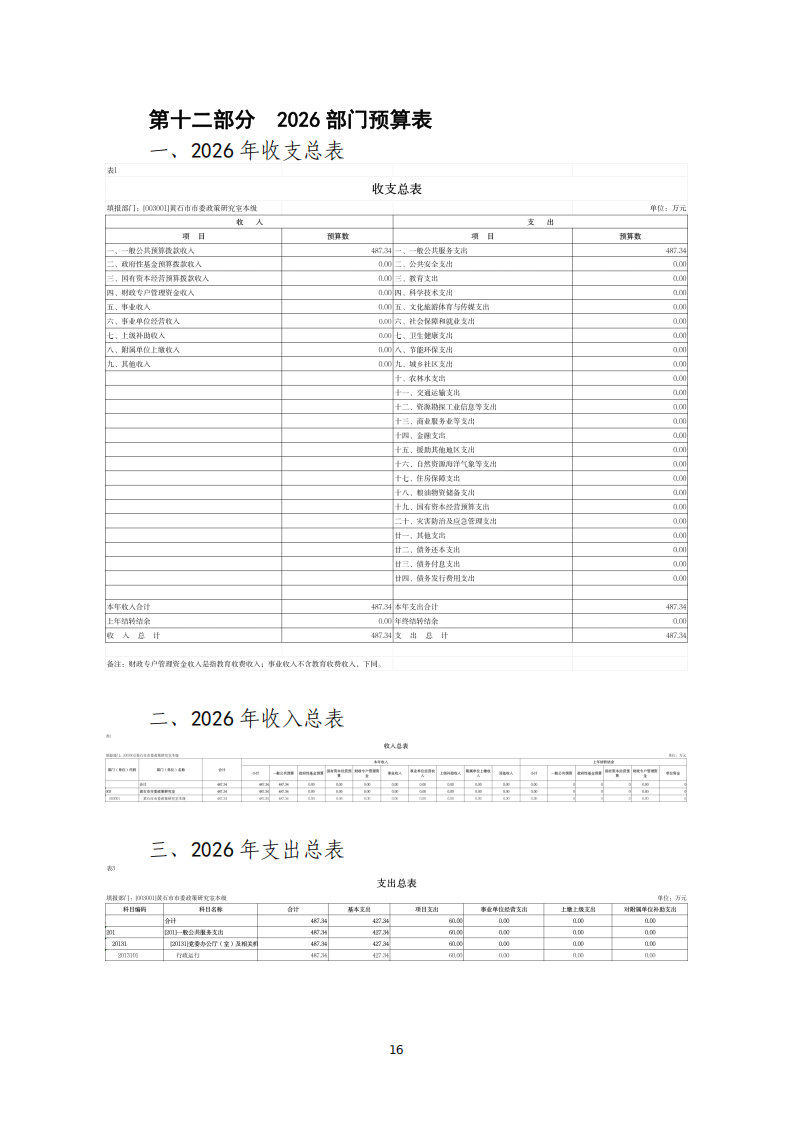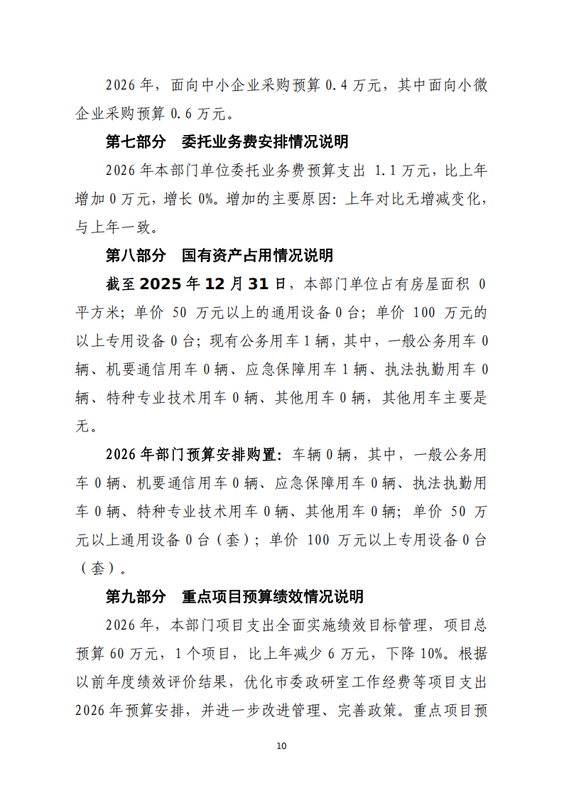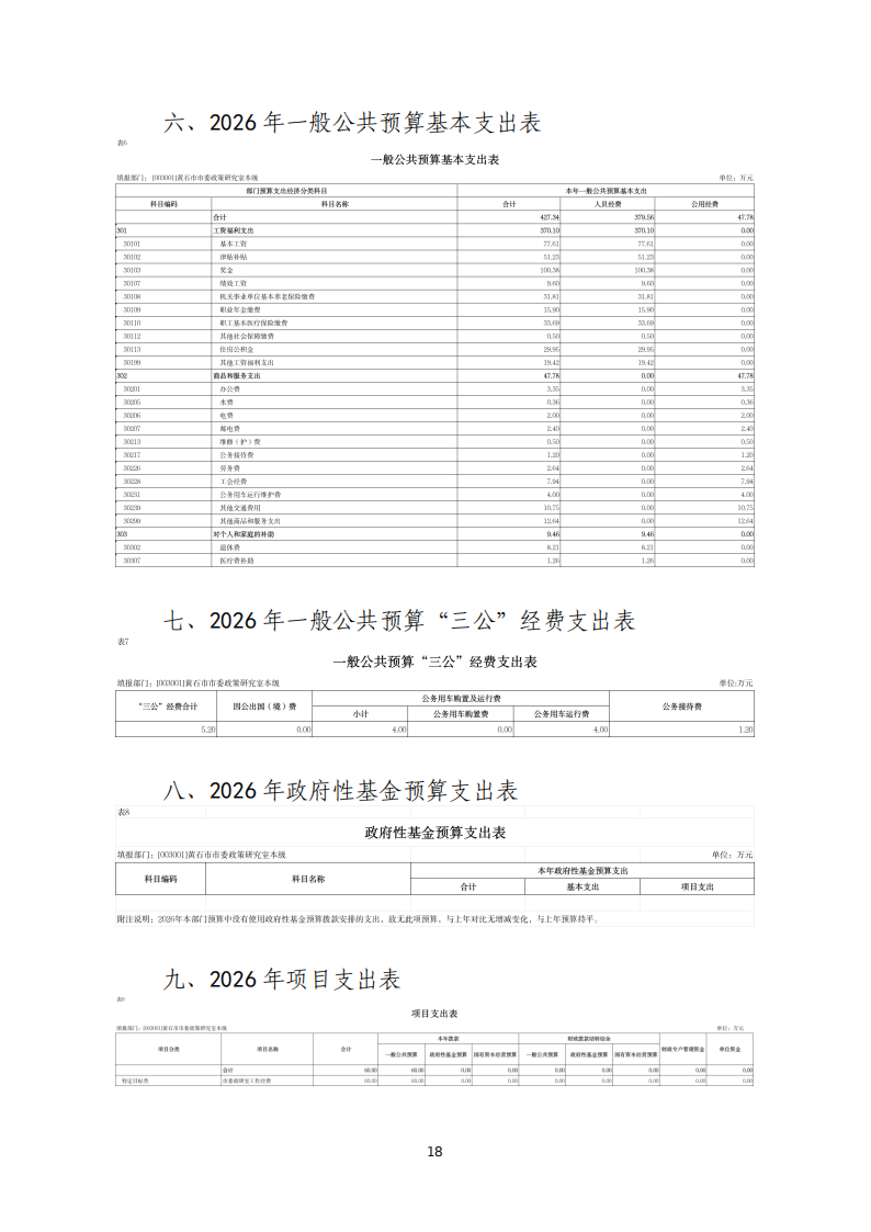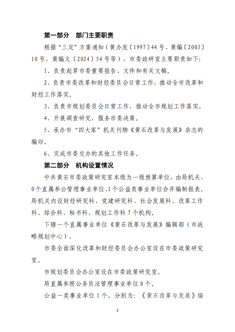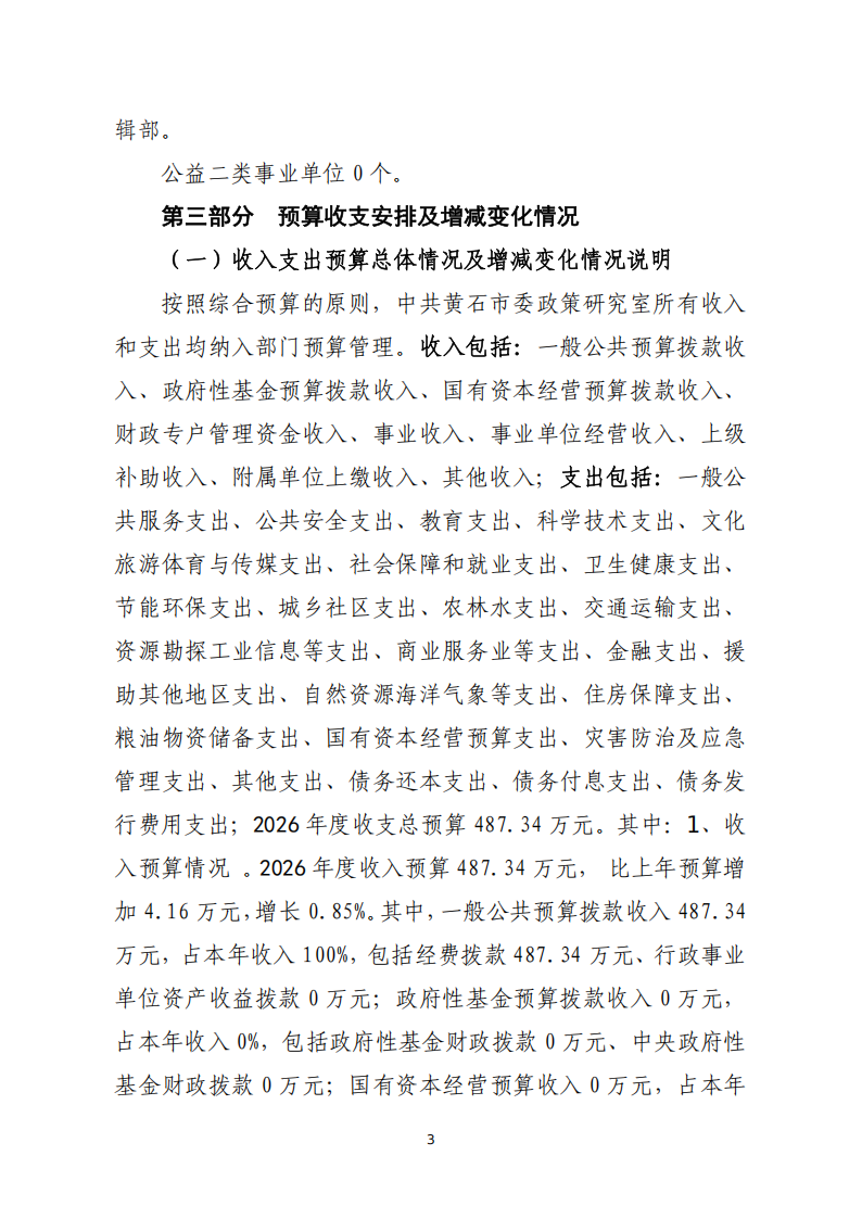 2026年度中共黄石市委政策研究室部门预算公开情况说明