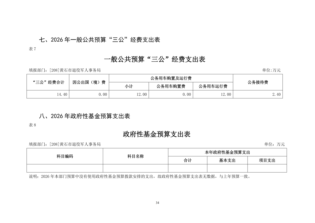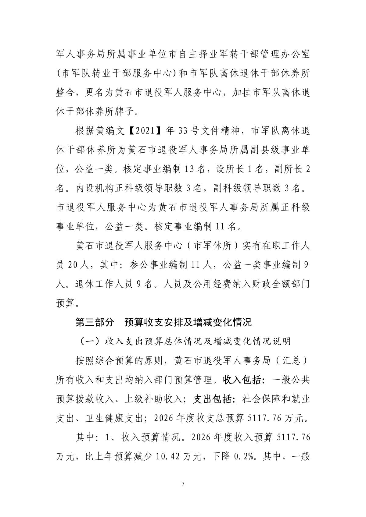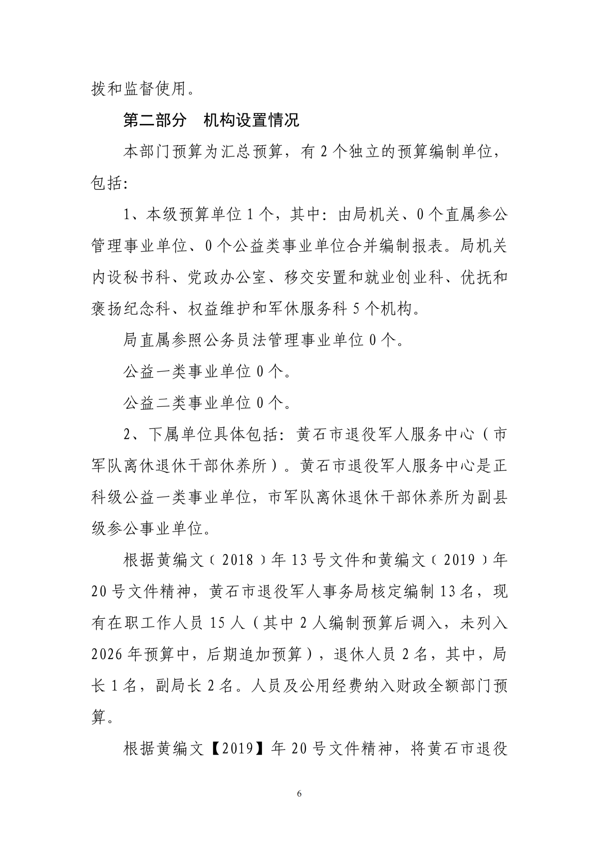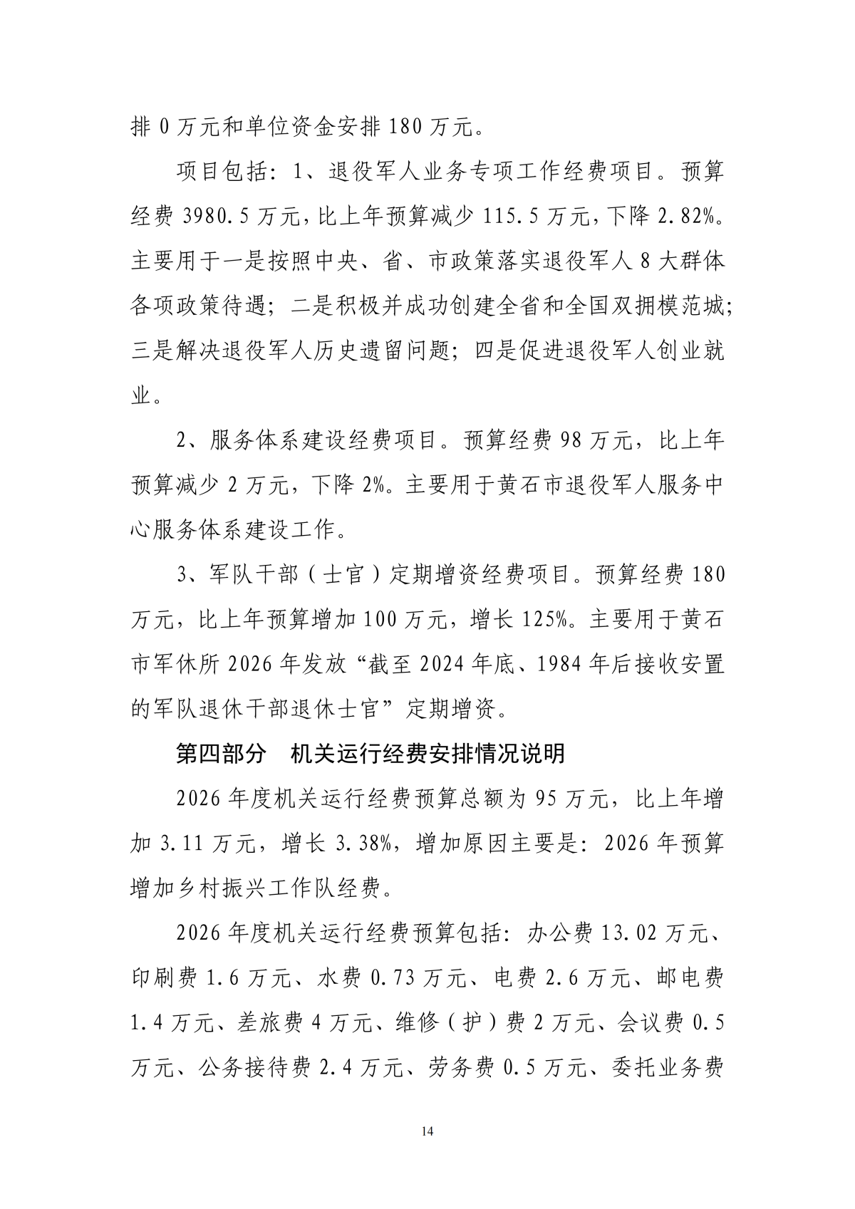 2026年度黄石市退役军人事务局(汇总)部门预算公开情况说明