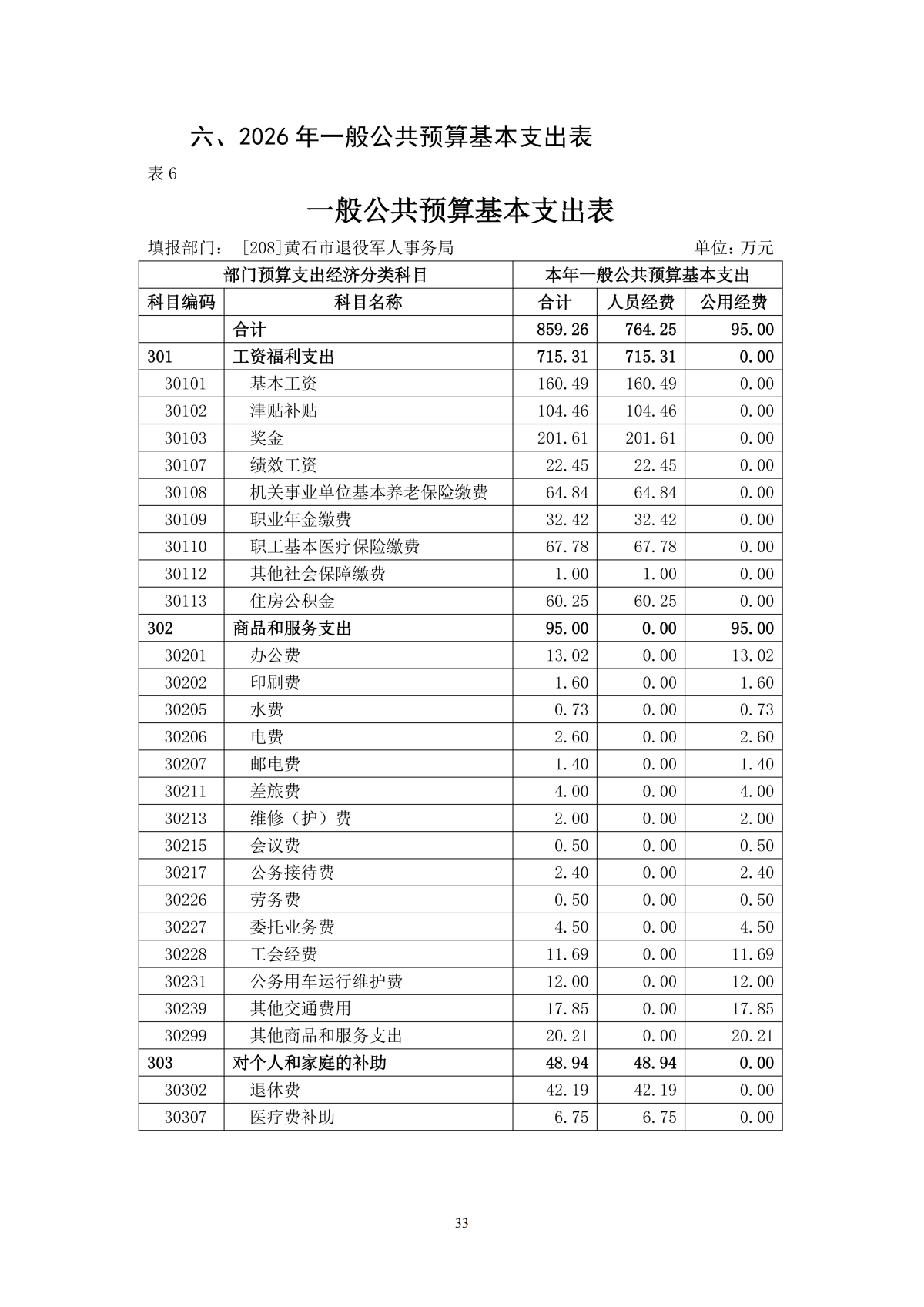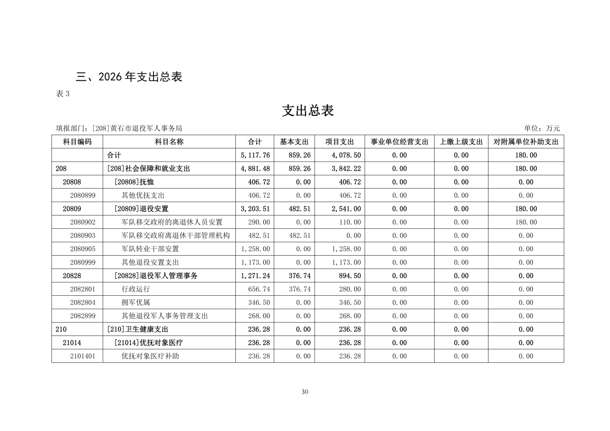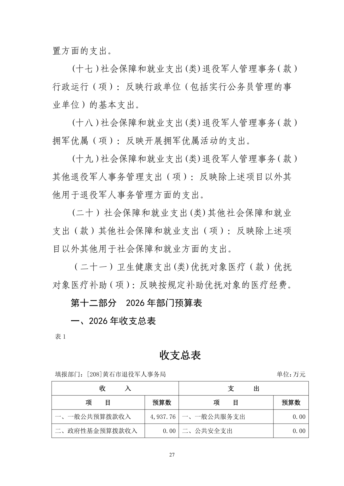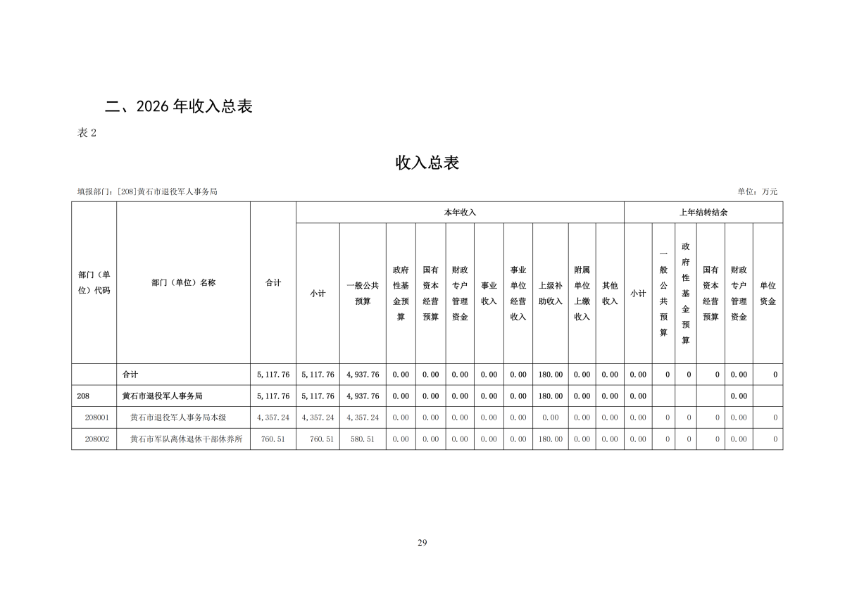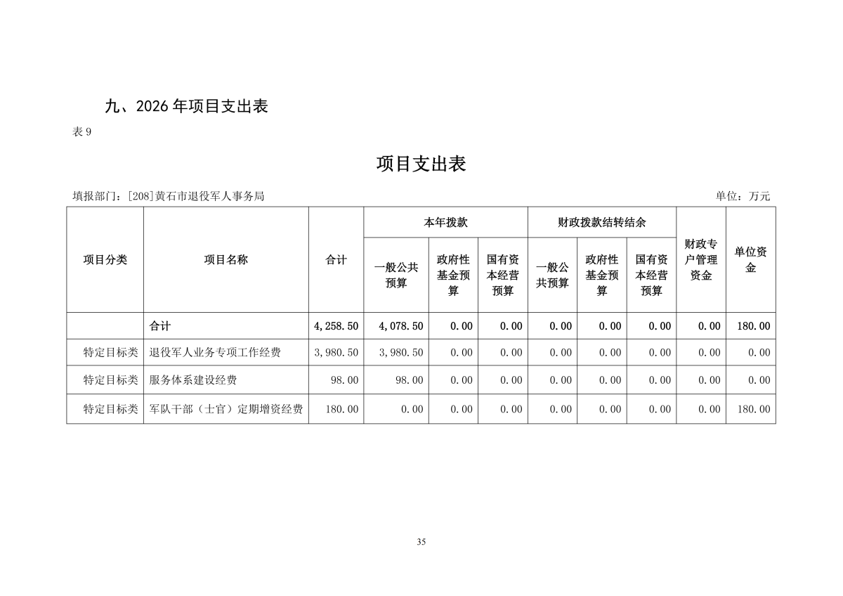 2026年度黄石市退役军人事务局(汇总)部门预算公开情况说明