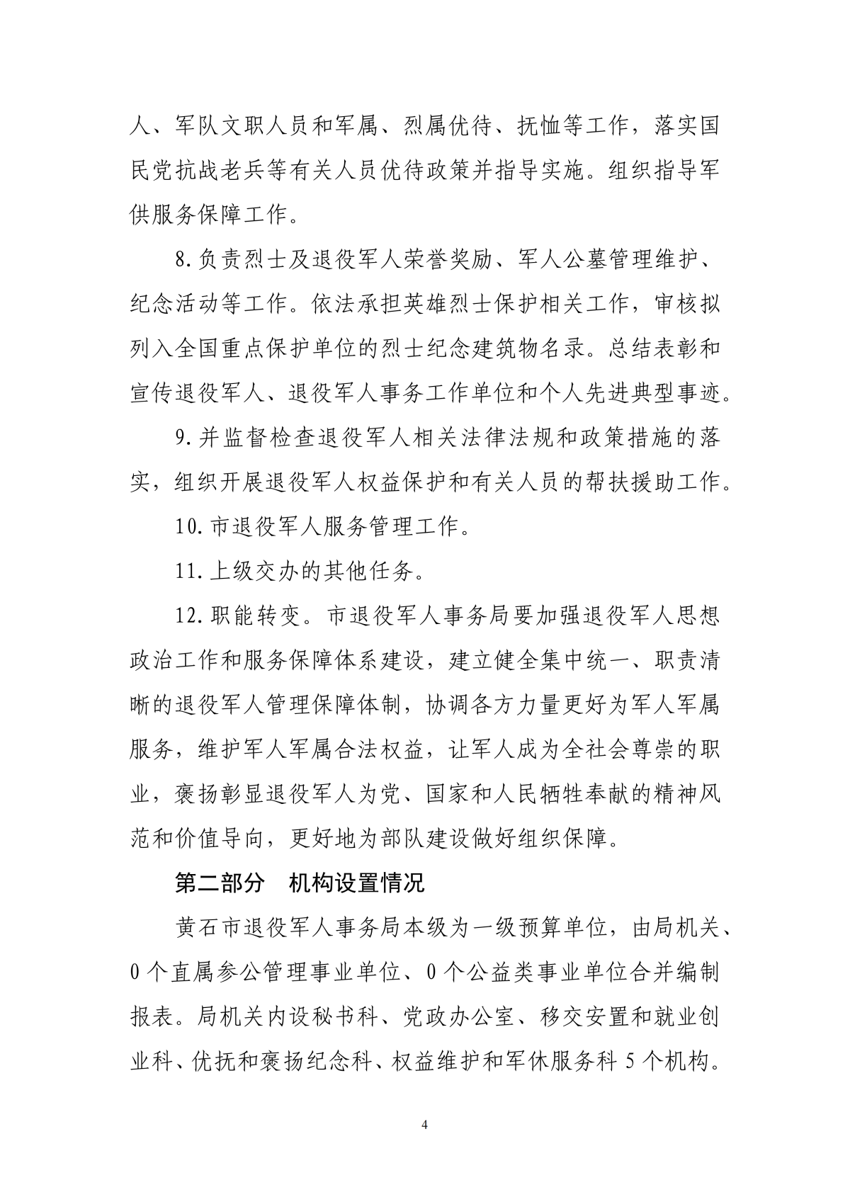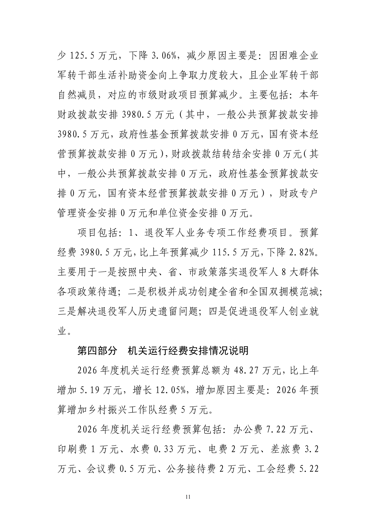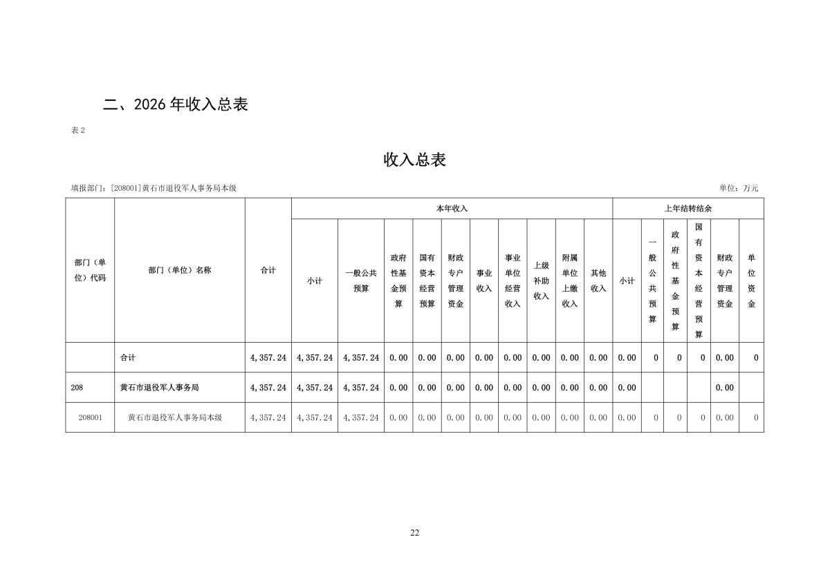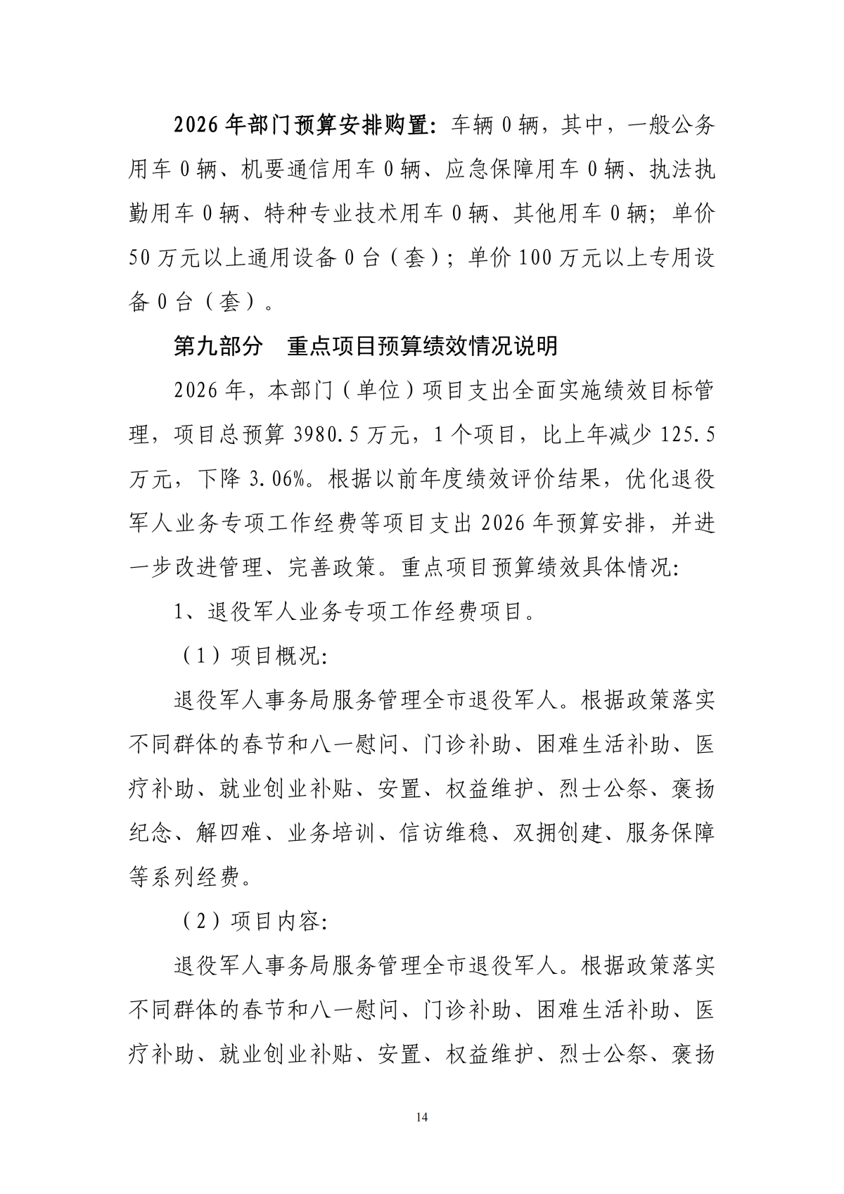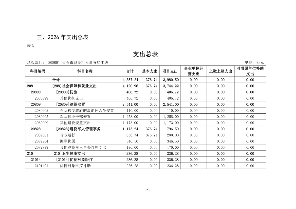 2026年度黄石市退役军人事务局本级部门预算公开情况说明