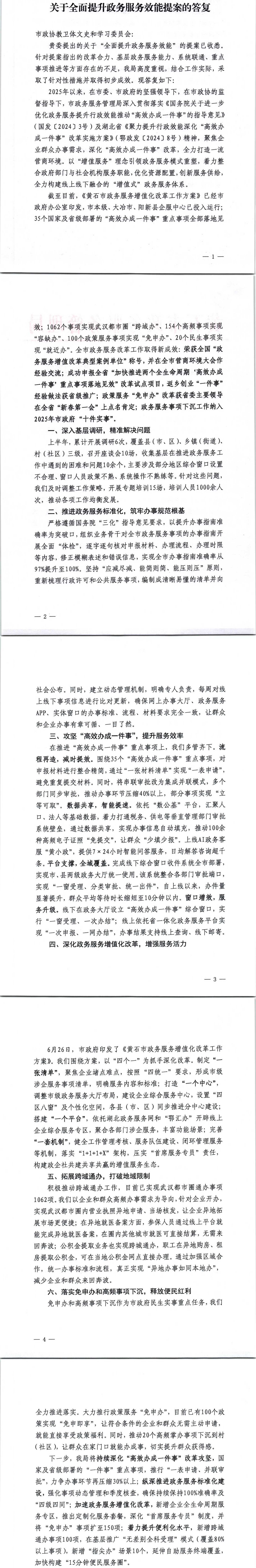 关于全面提升政务服务效能提案的答复