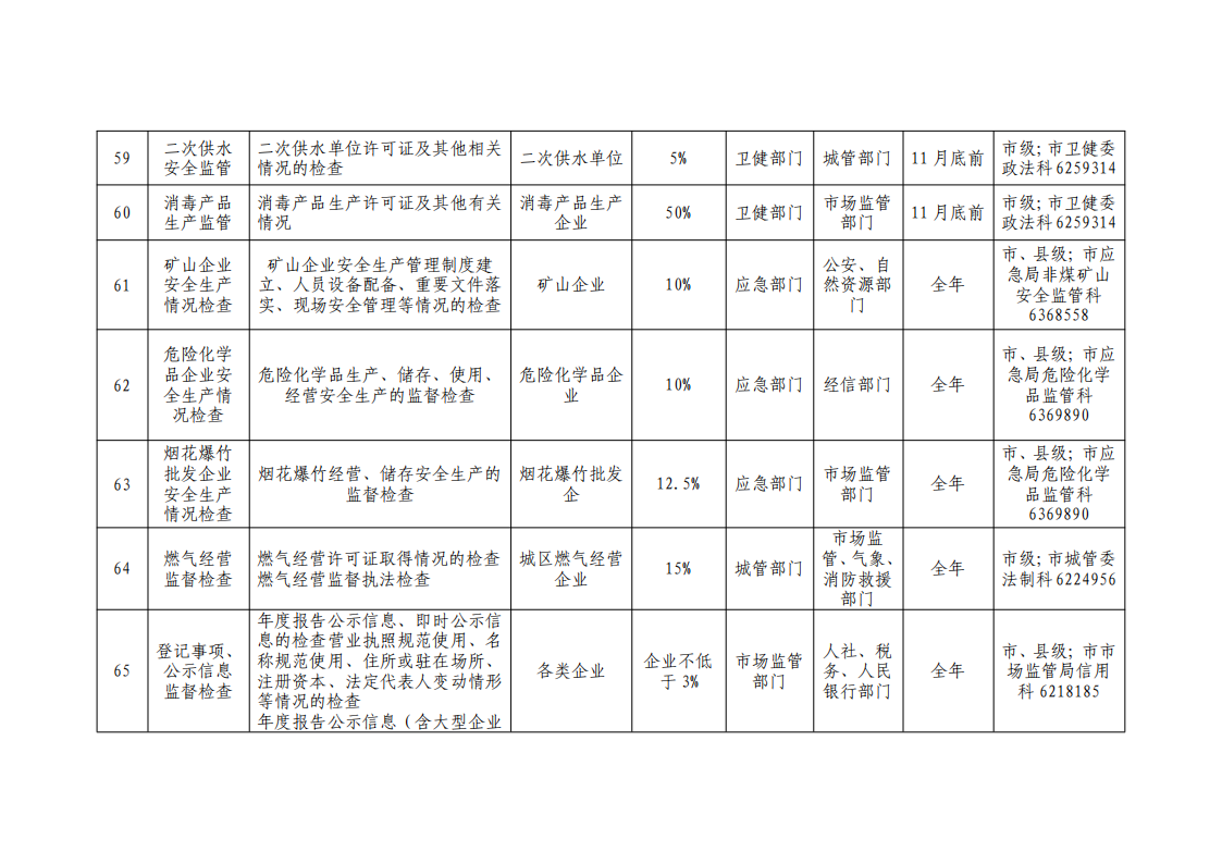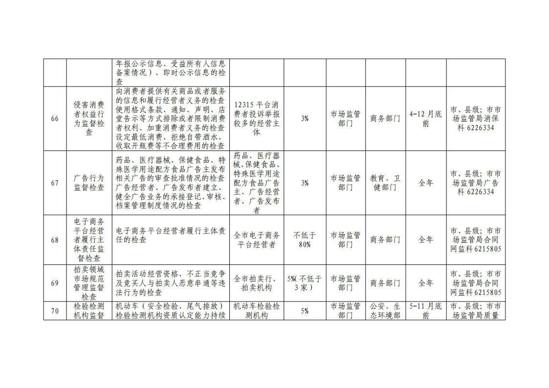 各县(市、区)市场监管局要严格对照部门联合抽查事项清单,紧密结合本地产业发展特点、监管工作实际和群众关心关注的民生热点,坚持问题导向、目标导向、结果导向相统一,统筹制定本辖区部门联合双随机抽查年度计划,计划制定完成后报市市场监管局和同级司法行政部门备案。要加强区域内、系统内双随机抽查工作的统筹协调,进一步整合本部门内部各类抽查检查计划,积极推进多级联动、“综合查一次”等监管模式创新,切实减少涉企监督检查频次,着力降低企业迎检成本和负担,持续优化本地营商环境,激发经营主体发展活力。