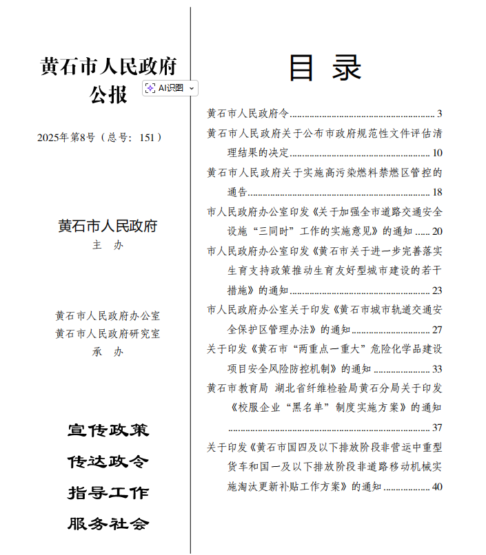 黄石市人民政府公报2025年第8号(总号:151)