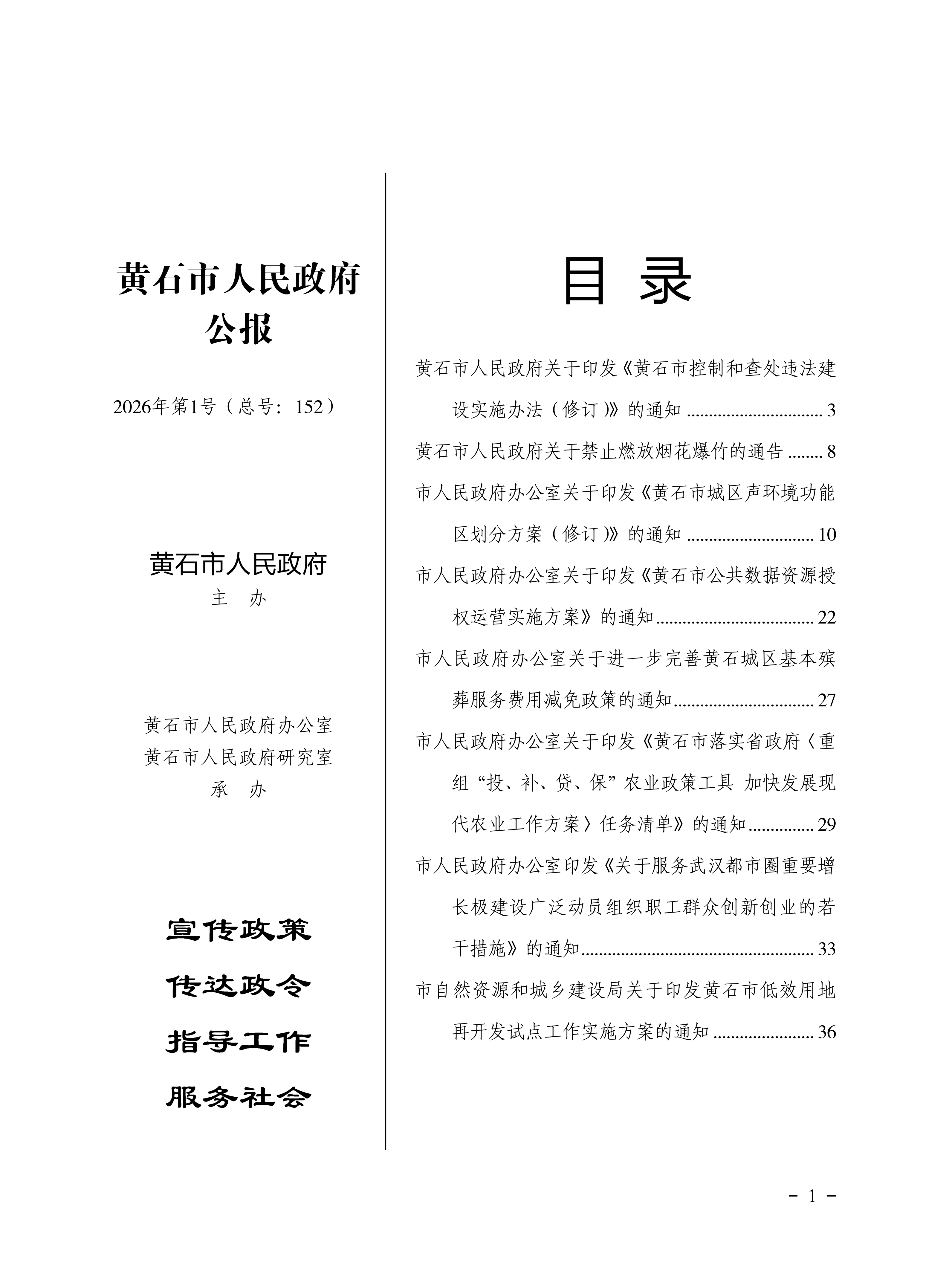 黄石市人民政府公报2026年第1号(总号:152)