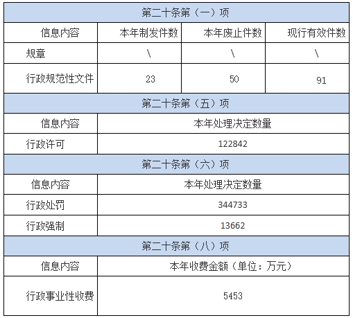 2025年,阳新县新增规范性文件23件,废止规范性文件50件,现行有效件数91件。本年度处理行政许可122842条、行政处罚344733条、行政强制13662条。