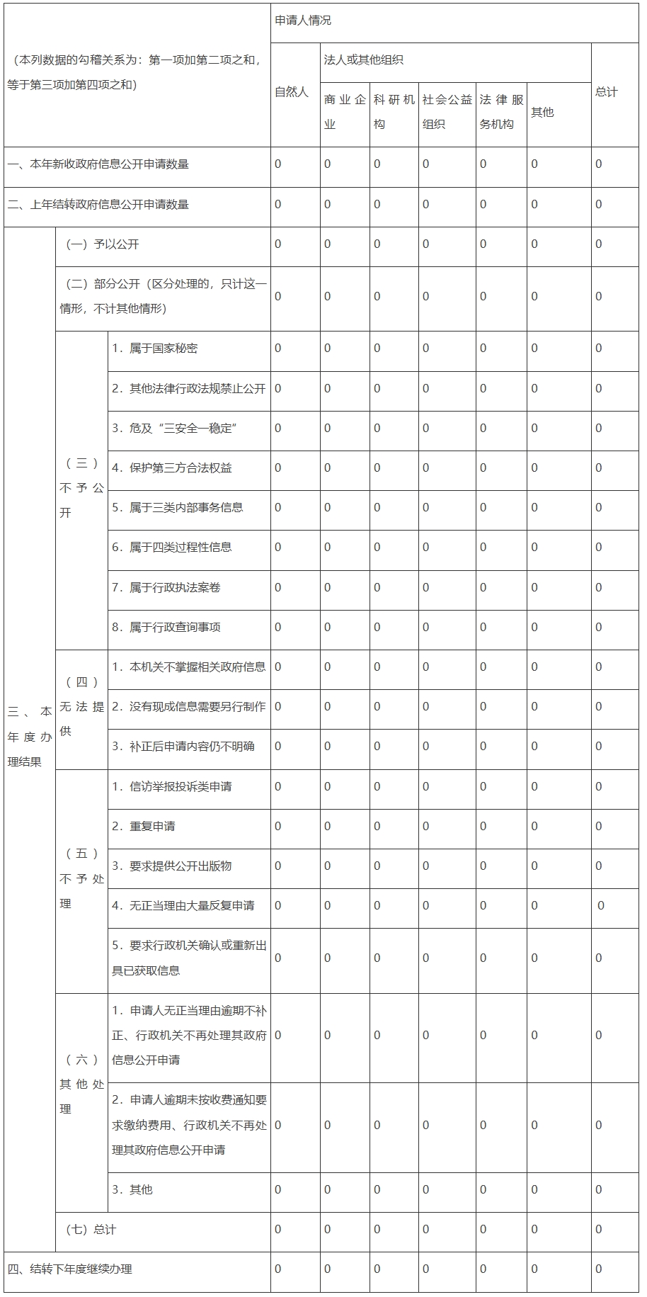 三、行政机关收到和处理政府信息公开申请情况