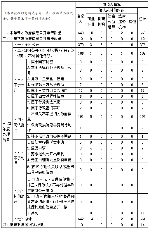 三、收到和处理政府信息公开申请情况